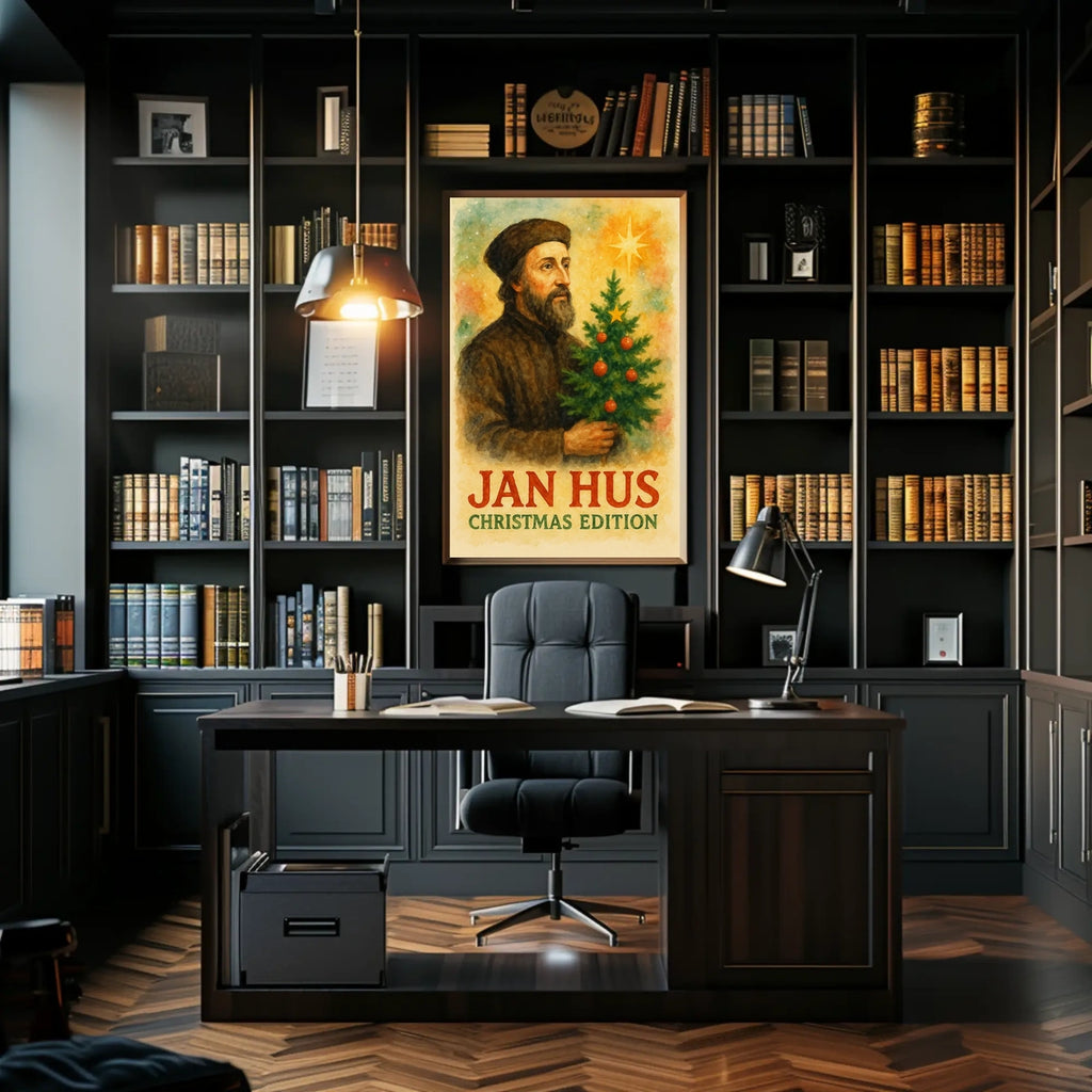 This Christmas Edition poster showcases a distinguished historical figure from the late medieval to early Renaissance era, dressed in rich period clothing topped with a classic hat. This elegant fusion of history and holiday spirit invites curiosity and storytelling while adding depth to your festive decor.