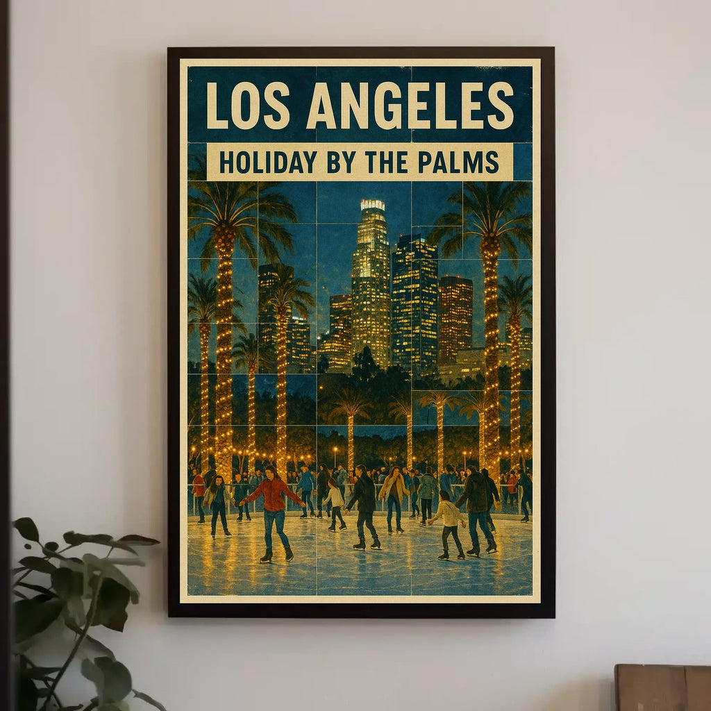Celebrate the beauty of Holiday By The Palms In Los Angeles Poster with this timeless wall art. Designed to capture its unique appeal, this Los Angeles poster adds charm to any room for decor lovers, wanderlust spirits, and anyone who wants to bring meaning and inspiration into their space, inspired by real-world scenery.