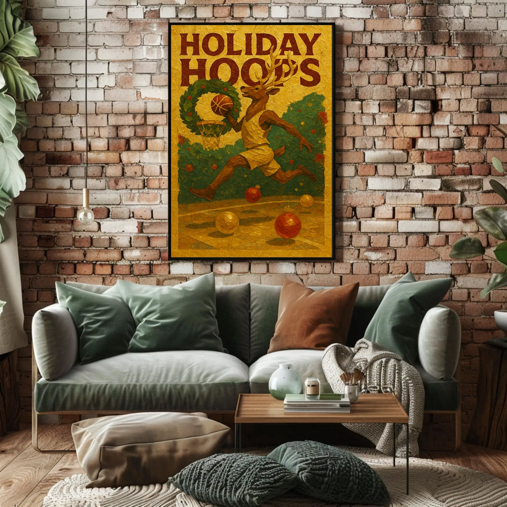 This poster captures the essence of Holiday Hoops. Featuring visuals inspired by real-world scenery, it adds charm to any room and elevates everyday spaces into something special.