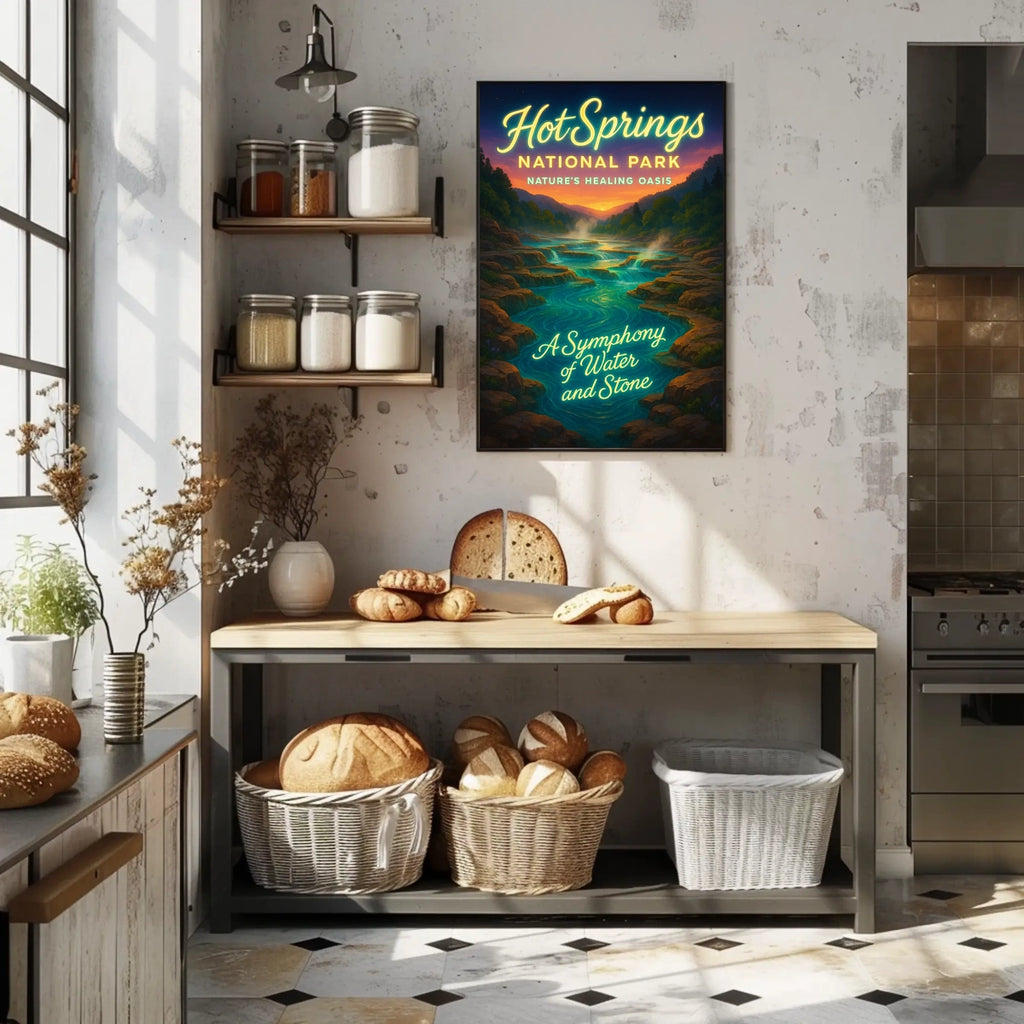 This poster captures the essence of Hot Springs National Park, a symphony of water and stone. Designed for decor lovers and wanderlust spirits, it adds charm to any room with visuals inspired by real-world scenery. The blend of Art Nouveau lines and watercolor textures gives a timeless, easy-to-love look that works in living rooms, bedrooms, or hallways. Ideal for Home & Garden decor, it slides into any style—from modern to rustic.