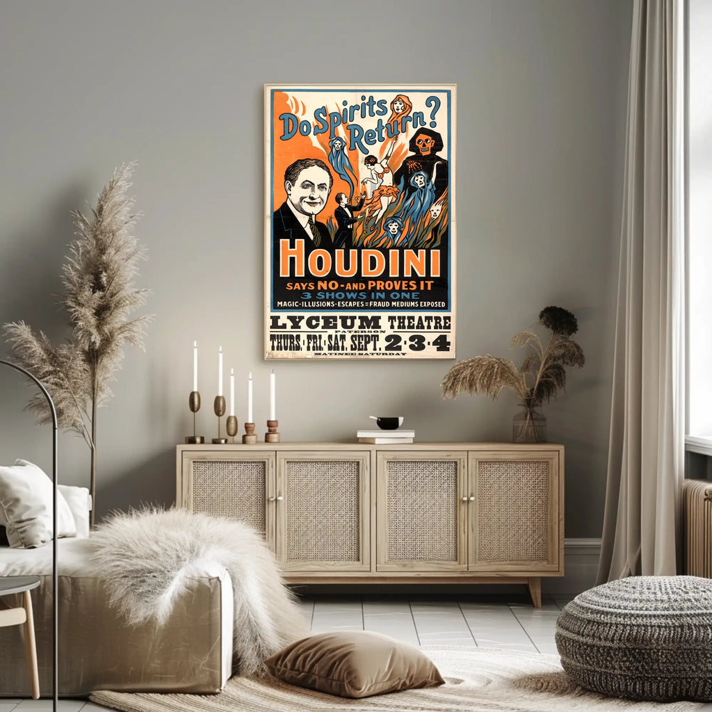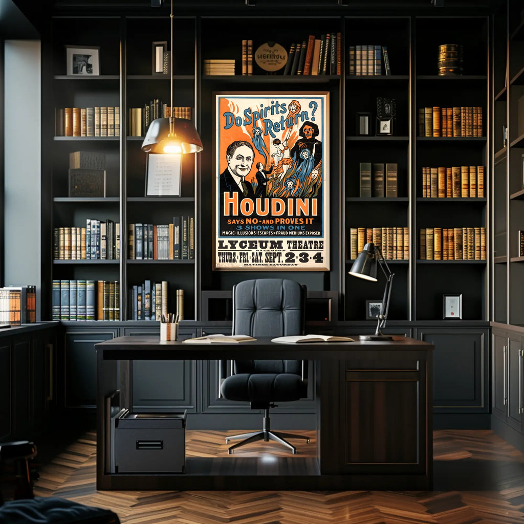 This poster sits squarely in Home & Garden > Decor > Artwork > Posters, Prints, & Visual Artwork > Posters and serves as an exceptional conversation piece—whether you’re building Houdini decor, styling a theatre-themed room, or adding cultural history to your walls.