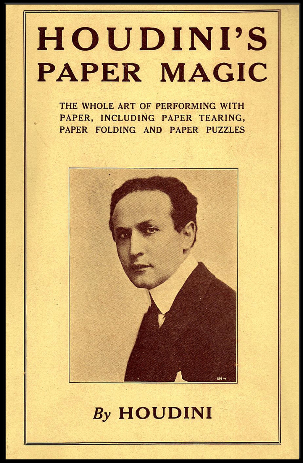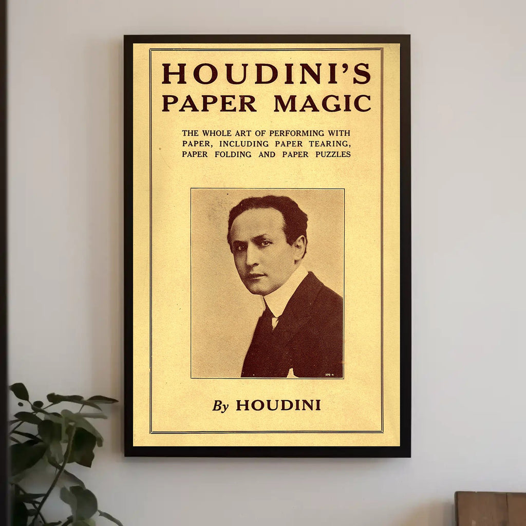 Houdini's Paper Magic: Vintage Cultural or Heritage Poster from PosterGoat brings the mystique of early 20th-century magic into your home or office. This artful poster features a sepia-toned portrait of Houdini framed by authentic-looking aged paper and bold, classic typography reading "HOUDINI'S PAPER MAGIC" — a striking centerpiece that evokes cultural heritage, theatrical charm, and vintage poster appeal.