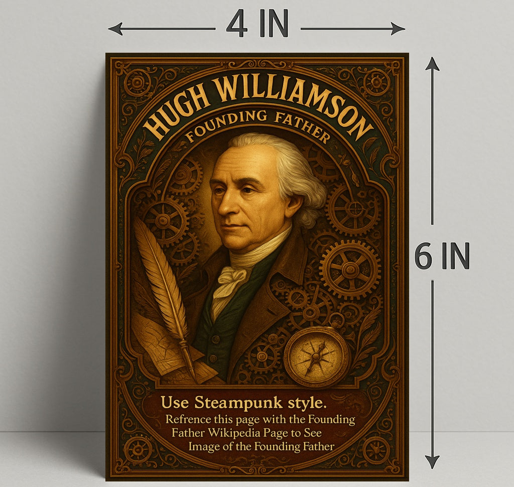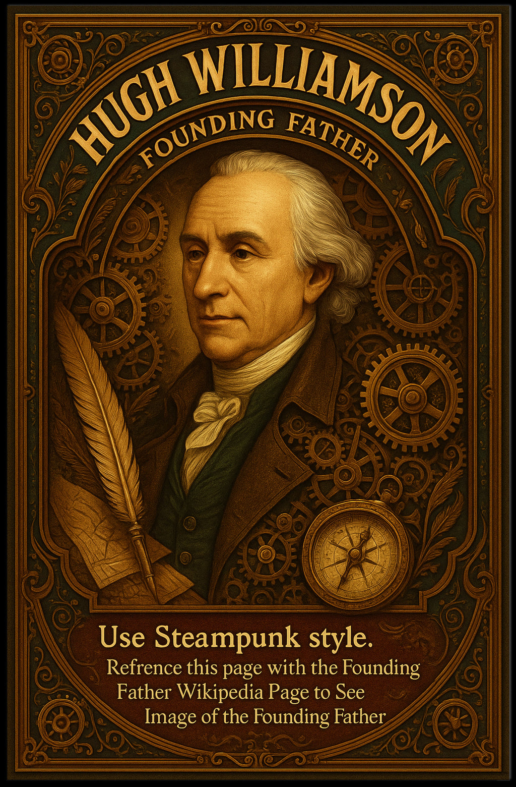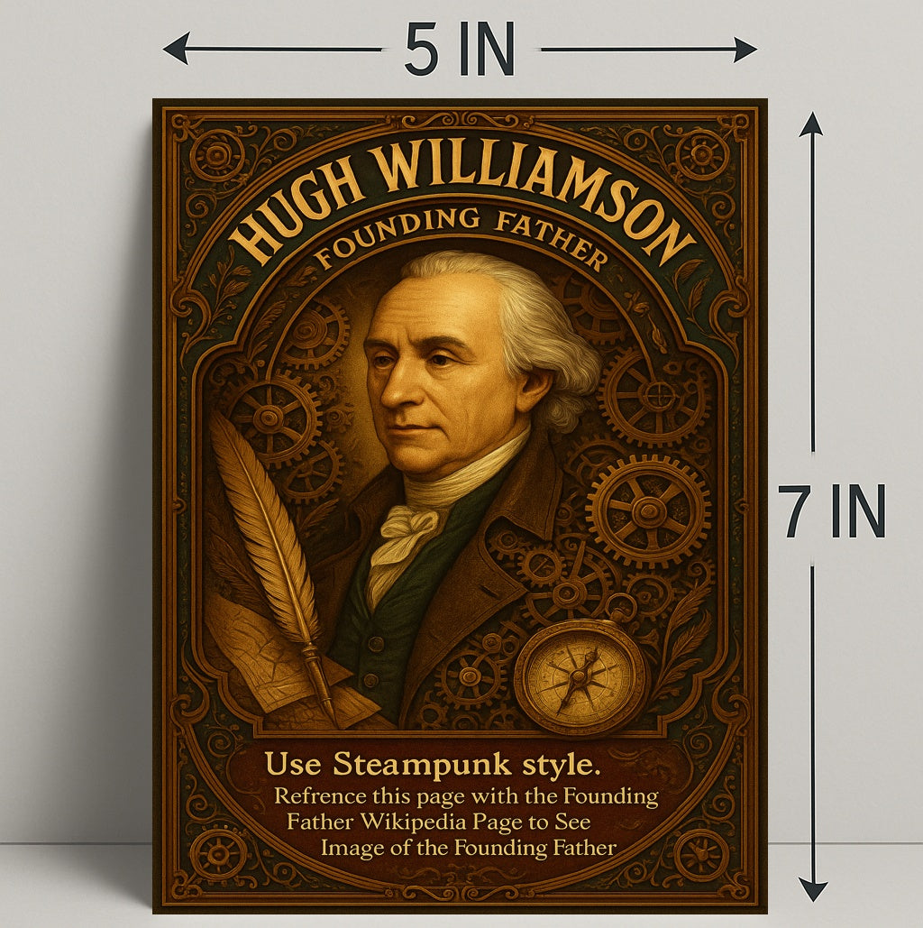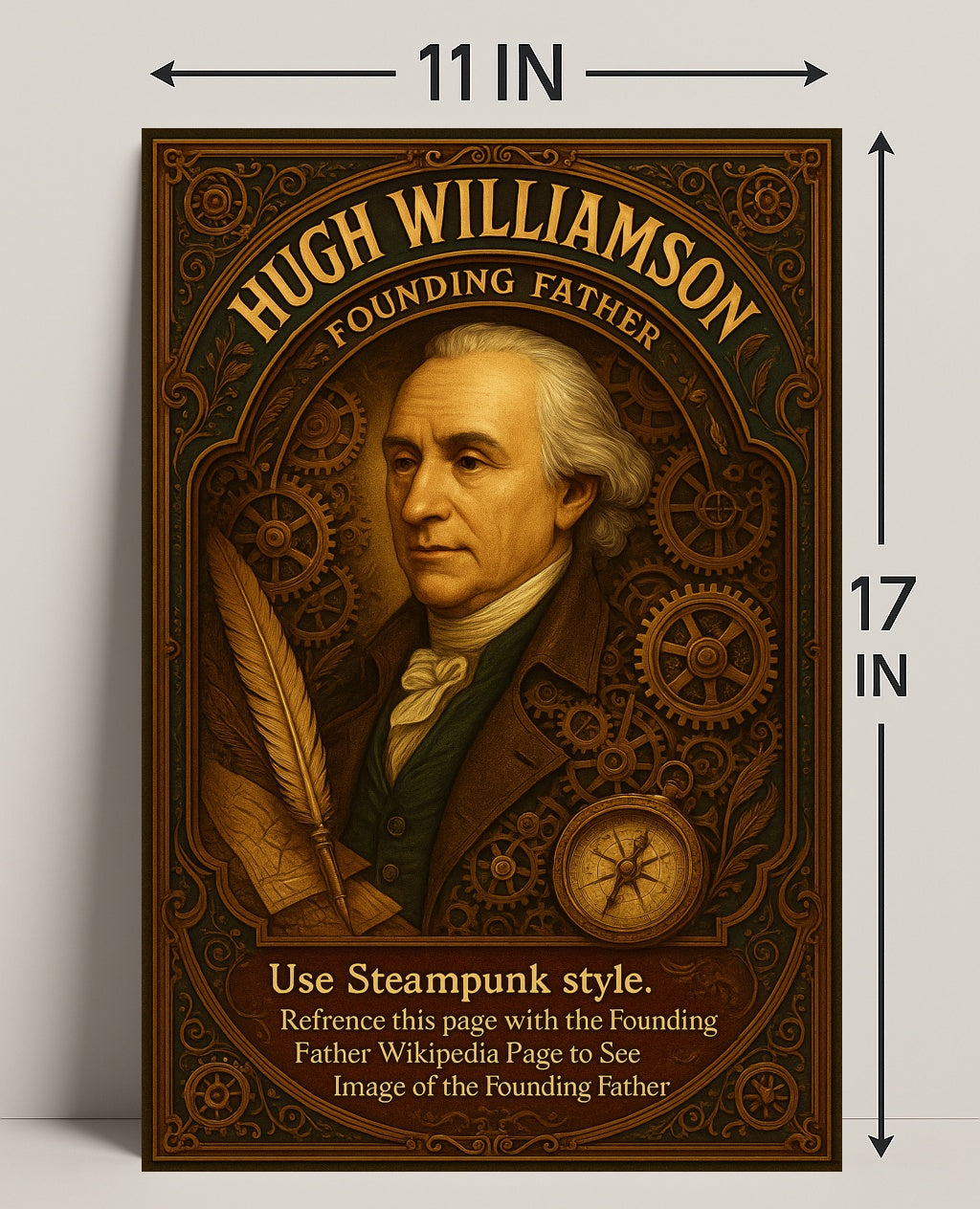 Introducing the Hugh Williamson Founding Father Poster, a stunning art print that beautifully captures the essence of one of America's founding figures. Perfect for decor enthusiasts and those with a sense of adventure, this poster infuses charm and historical significance into any space. With its captivating steampunk design, it serves as a conversation starter, making it an ideal addition to your home or office.
