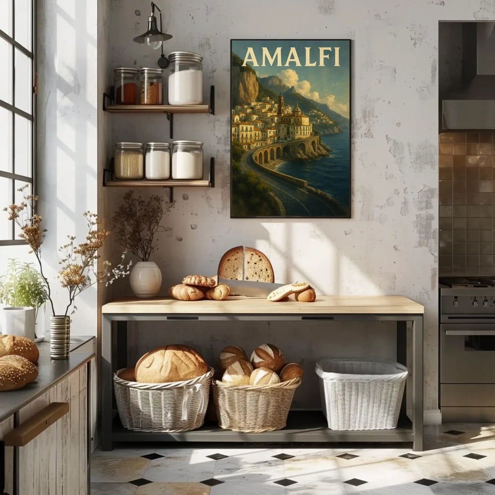Experience the sun-drenched drama of the Amalfi coastline with the Hyperrealistic Amalfi Poster. This museum-quality print captures coastal light and texture with astonishing clarity, transforming any wall into a work of art.