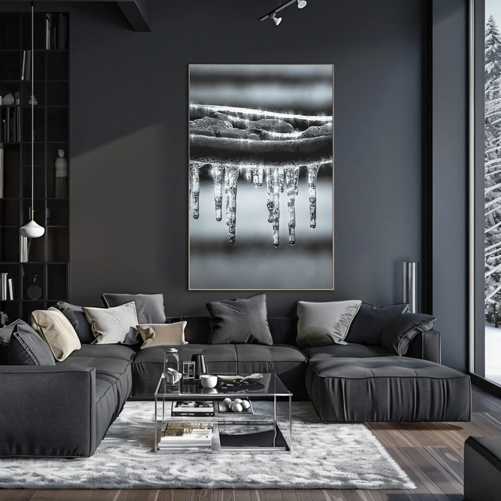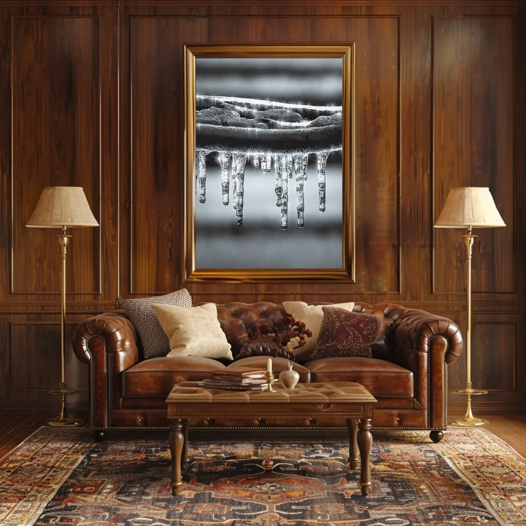 Bring Icicle Serenity into your space and let its serene nature, icy tranquility, and grayscale beauty inspire quiet reflection. A timeless piece for home wall art that complements grayscale decor and winter-themed art, this nature-inspired poster invites you to pause, breathe, and linger on the quiet elegance of winter.