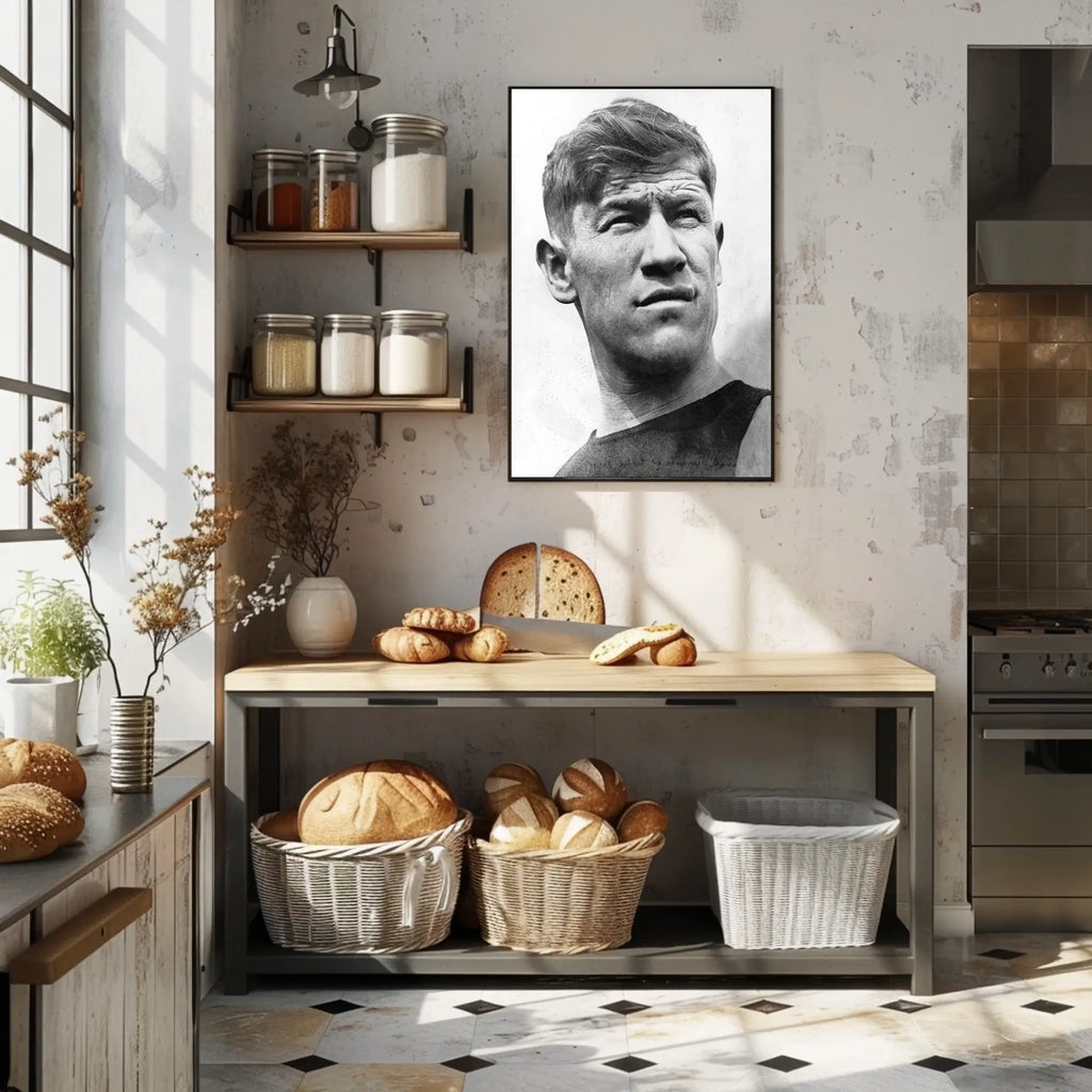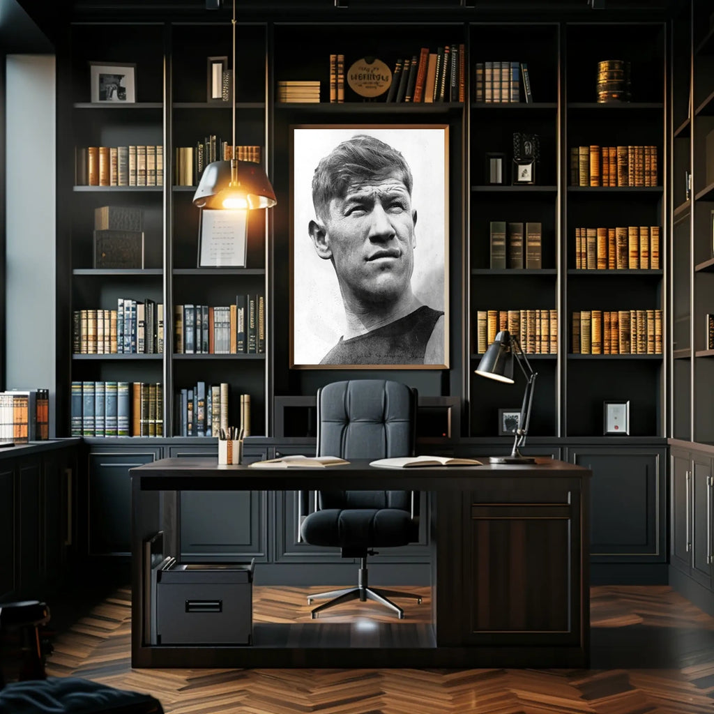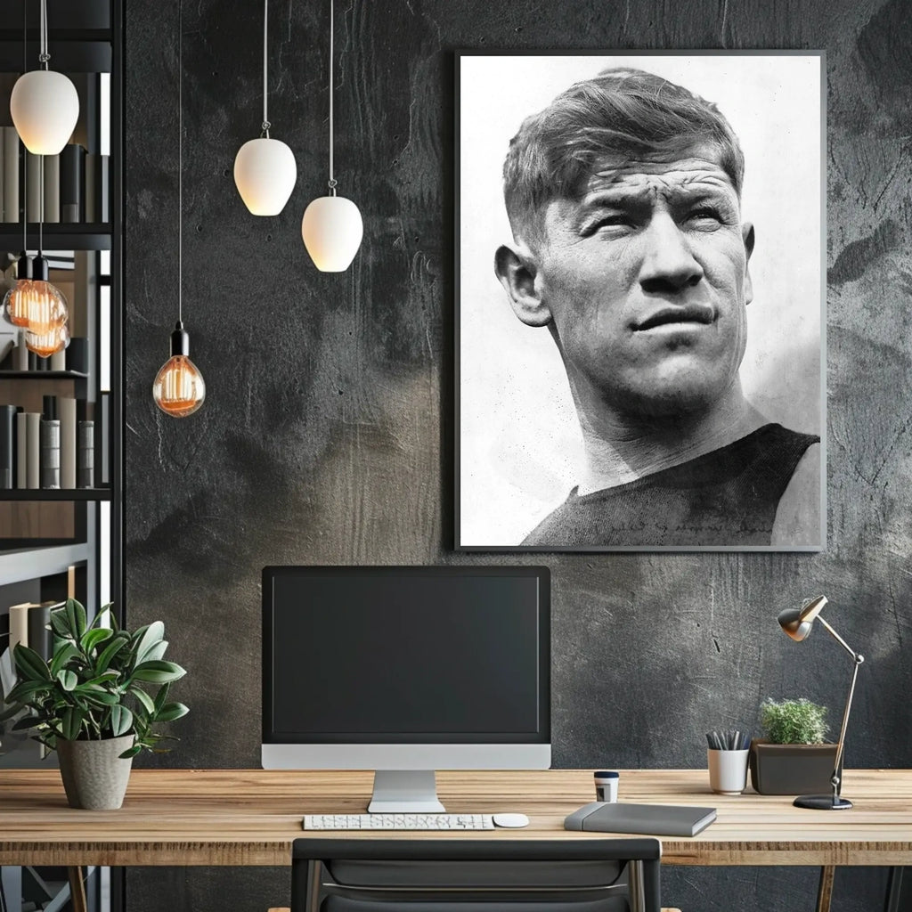 This captivating black-and-white poster embodies determination and resilience, delivering a bold statement that motivates action. Its intense gaze and rugged features inspire steady effort, turning any space into a daily source of focus, courage, and perseverance.