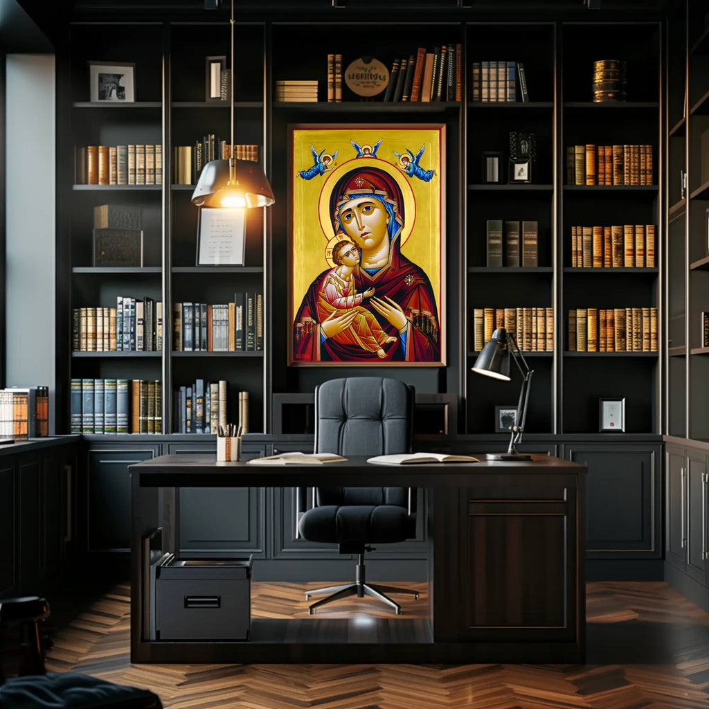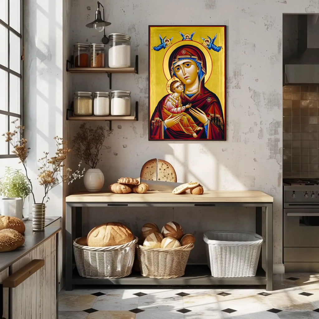 Iconic subject with timeless appeal: This Madonna and Child motif instantly elevates any room with heritage and grace.