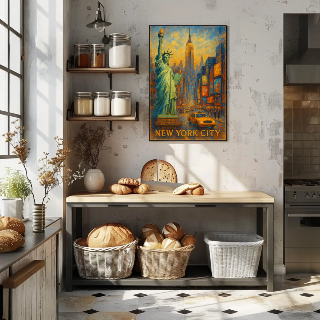 Immerse your walls in the dynamic energy of the Big Apple with this Iconic New York City Poster. Its impressionistic glow and warm hues celebrate skylines, waterways, and iconic landmarks, turning a simple wall into a vivid urban moment that resonates with city lovers and design enthusiasts alike.