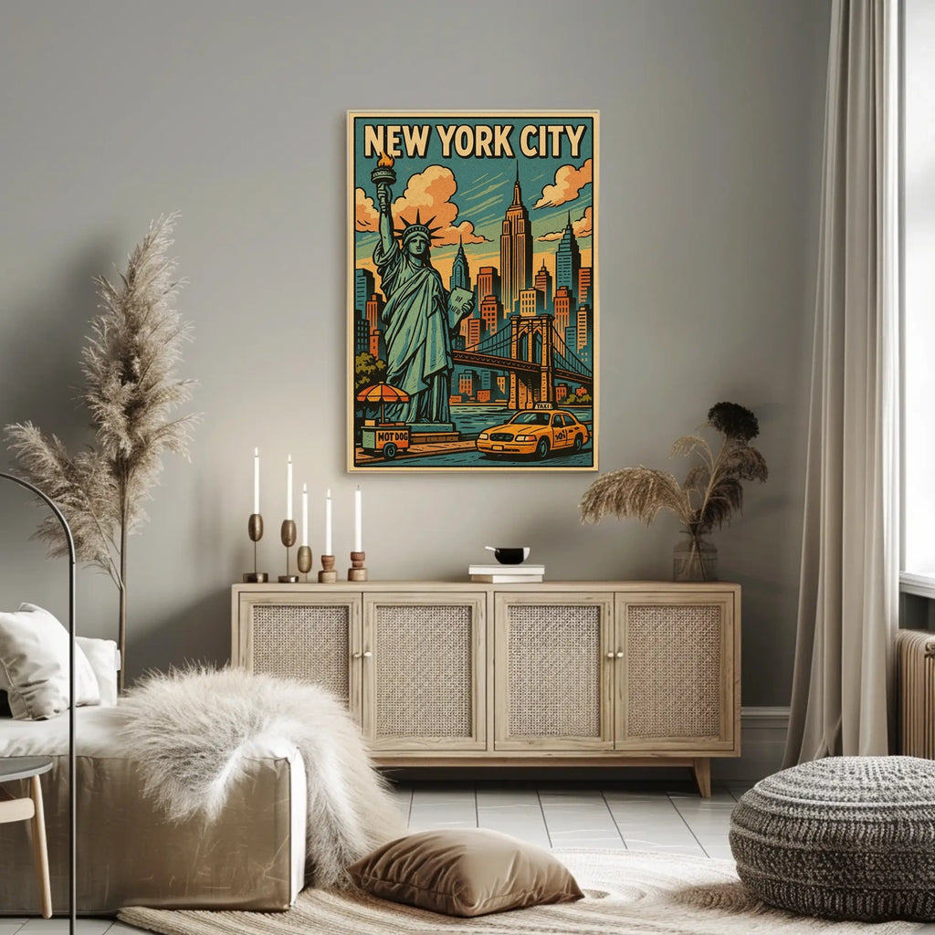 Bring the energy of the Big Apple into your space with this iconic NYC poster. A bold travel-inspired piece that celebrates architecture, culture, and urban life, it adds personality and conversation-worthy style to any wall. Ready to elevate your decor? Add to cart now and enjoy timeless New York vibes daily.