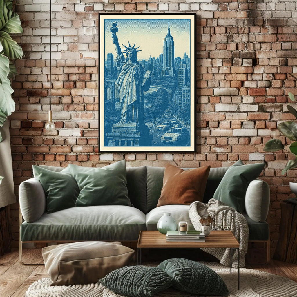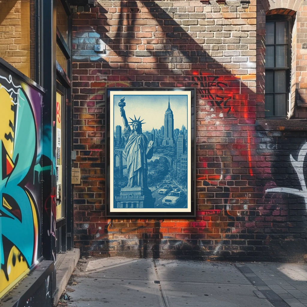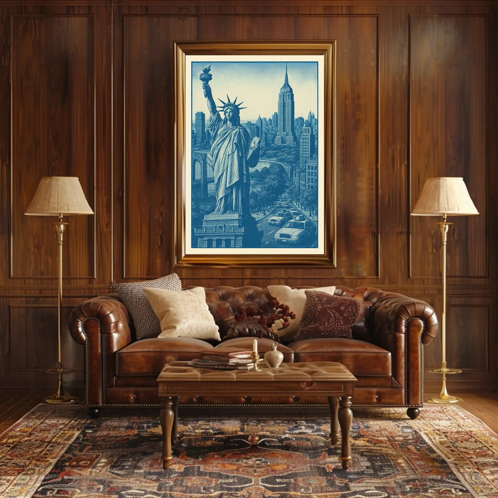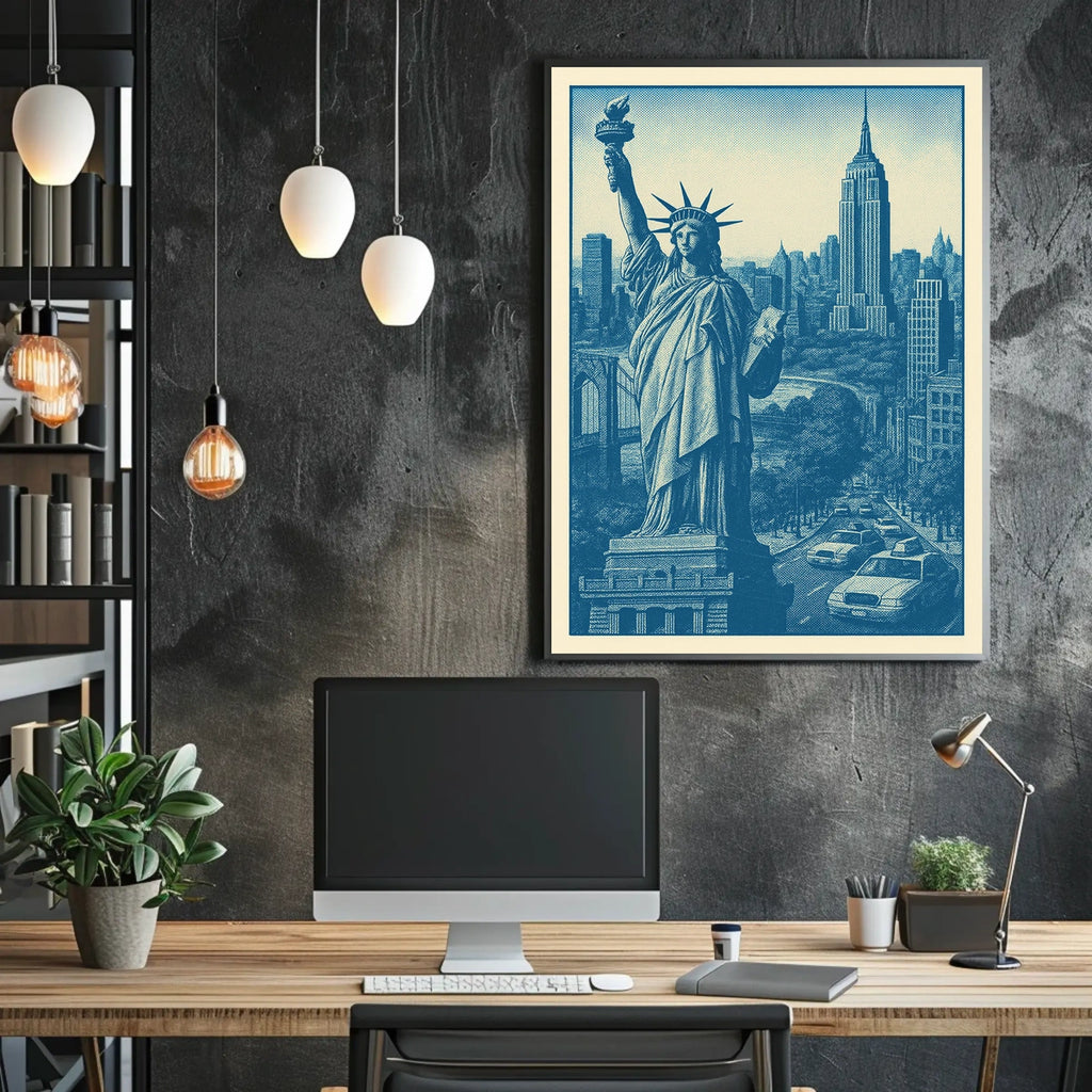 Step into the energy of New York City with this vintage-style poster. Showcasing the Statue of Liberty and the Empire State Building amid a lively skyline with yellow cabs, it captures NYC’s iconic spirit. A timeless addition for living rooms, offices, or halls that want authentic metropolitan charm.