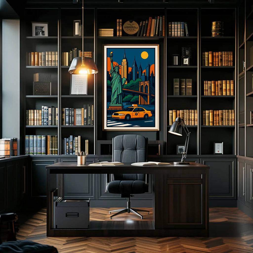 Iconic NYC Skyline And Statue Poster Modern Wall Art