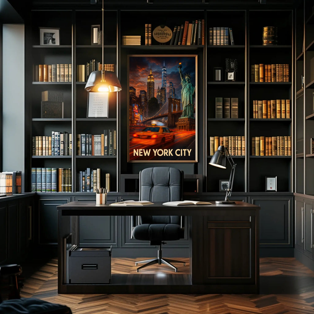 Experience the vibrant energy of New York City with this stunning poster—an ideal cityscape art piece for fans of the Big Apple. Celebrating landmarks from the Statue of Liberty to the Manhattan skyline, it captures the city’s dynamic spirit and timeless allure.