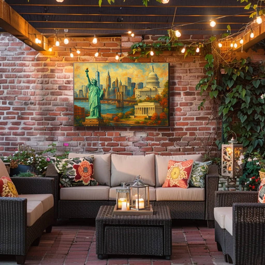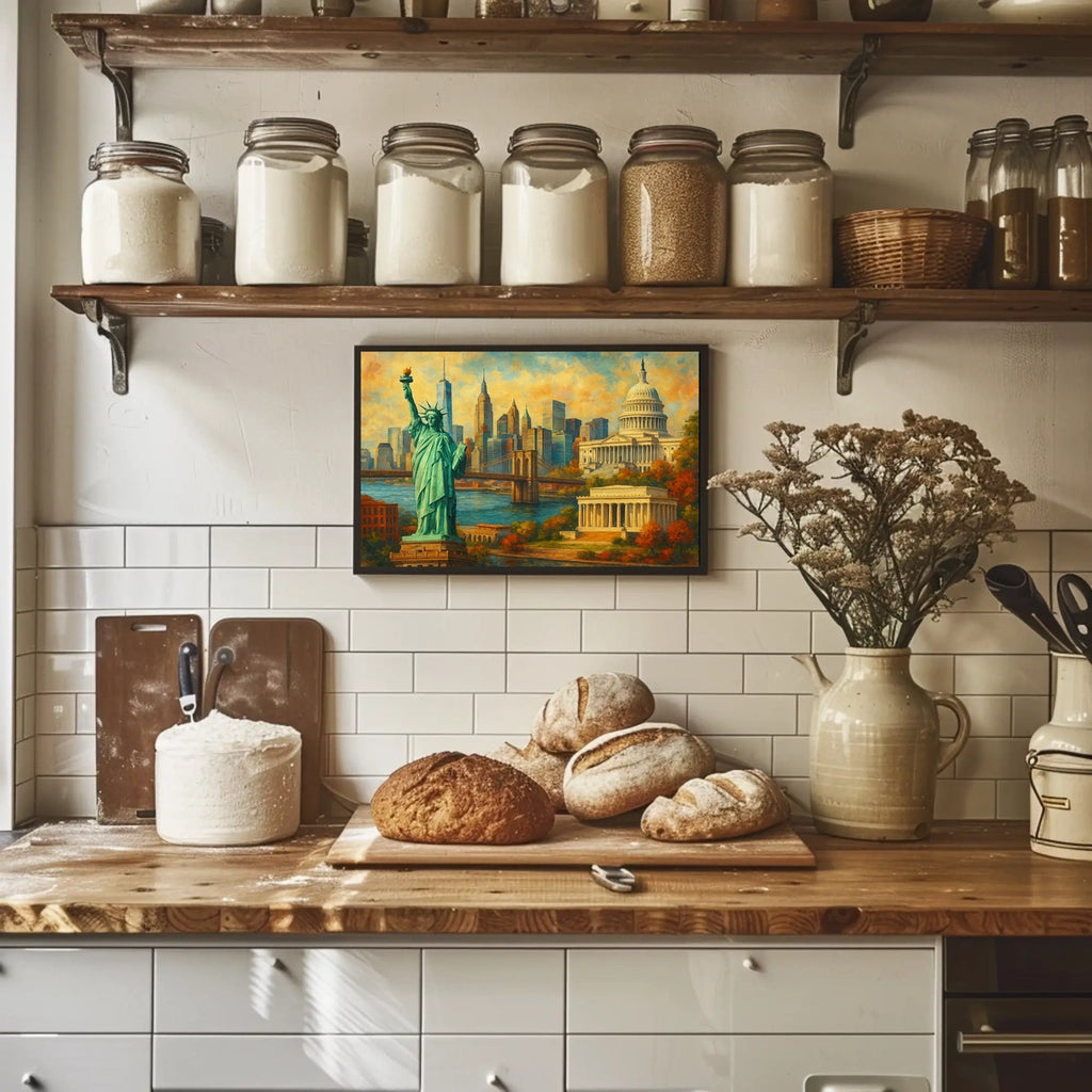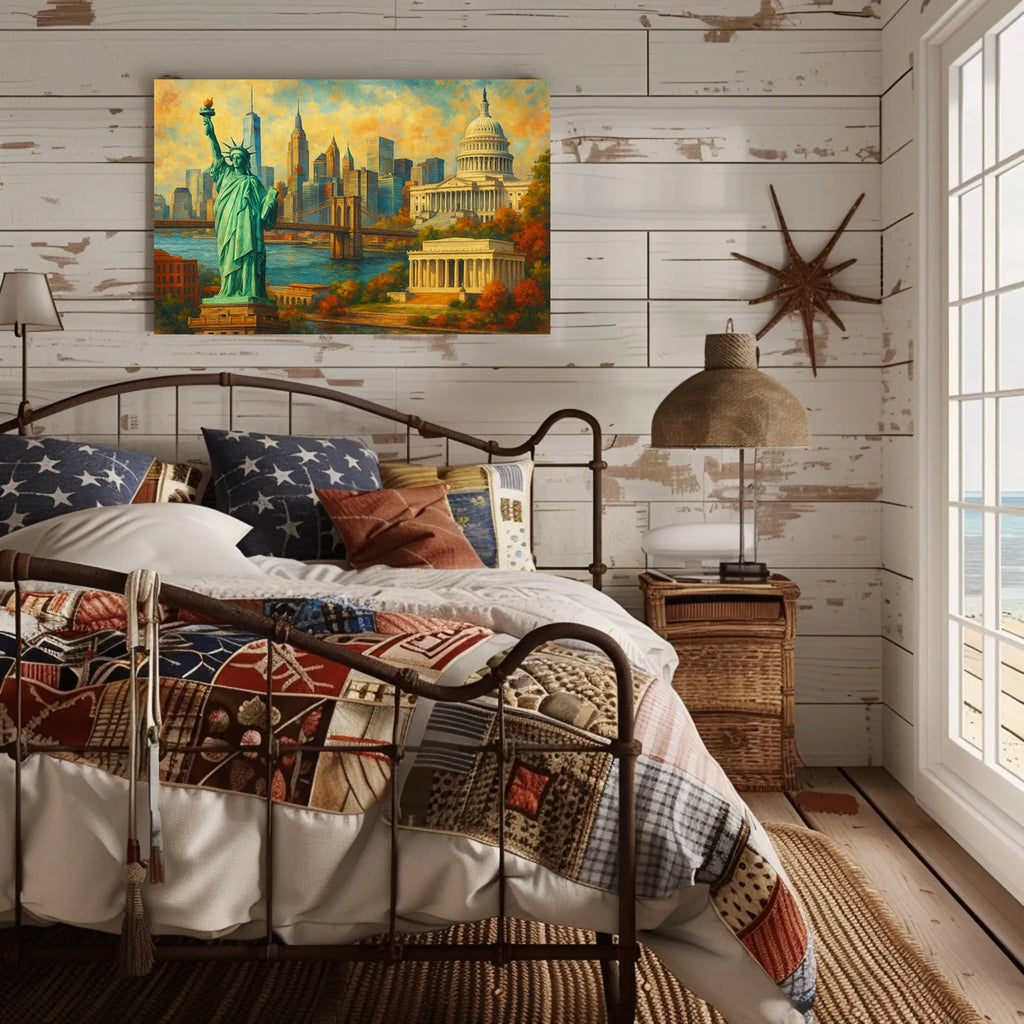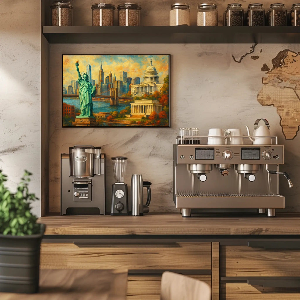 - Detailed design highlighting the unique Americana scenery and iconic landmarks captured in a modern poster style