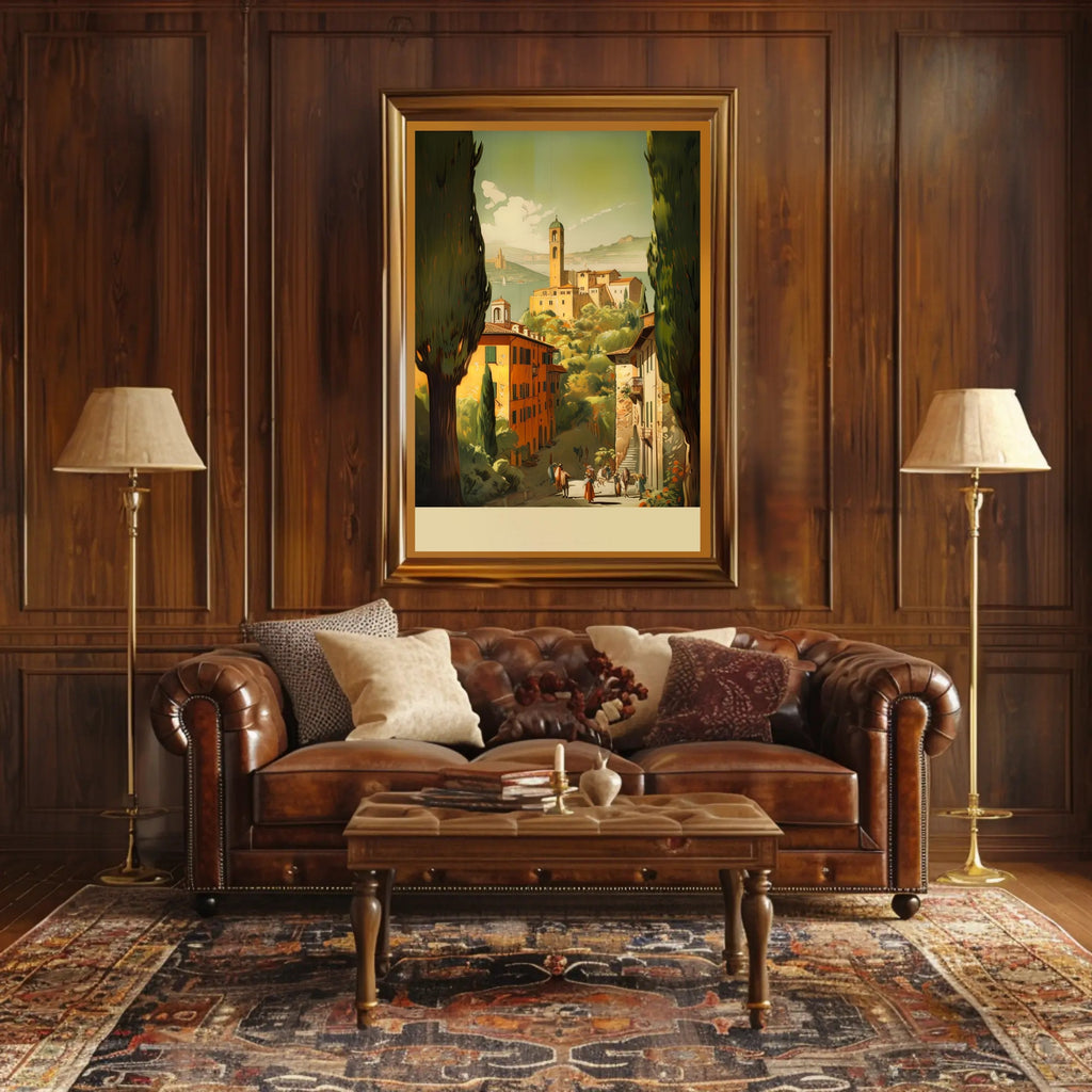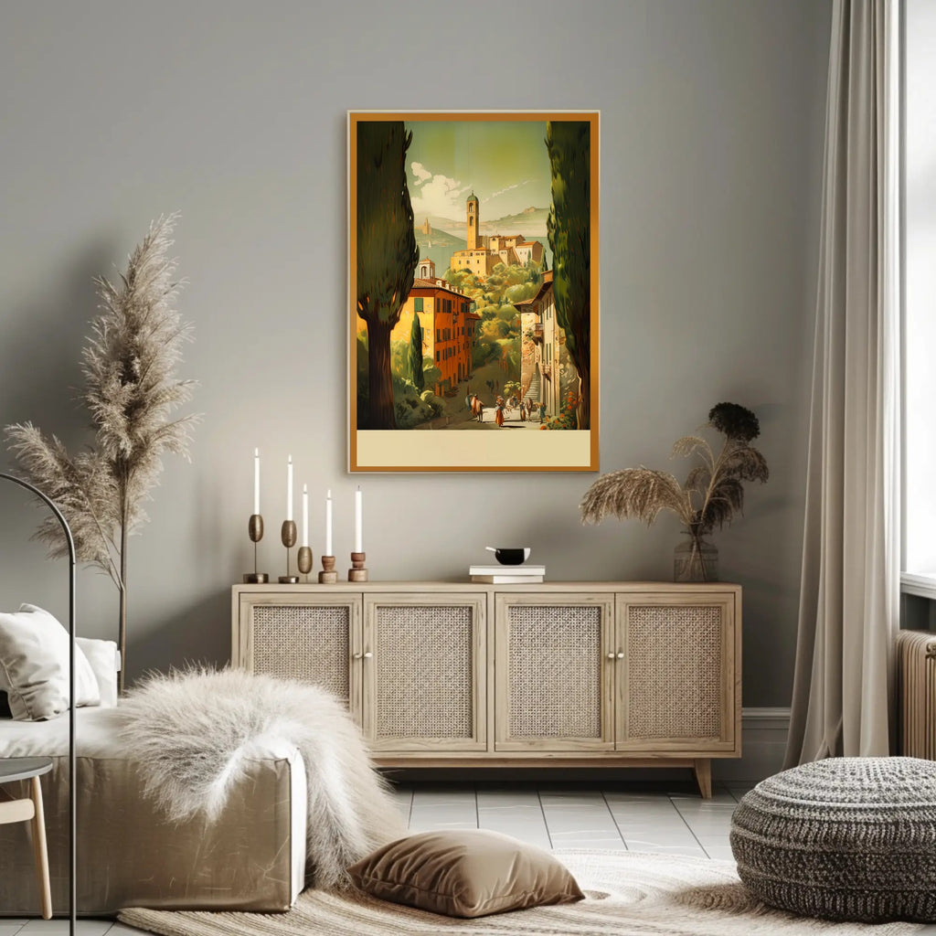 This travel poster captures the essence of Idyllic Village Landscape. Designed for decor lovers and wanderlust spirits, this art print adds charm to any room with visuals inspired by real-world scenery.