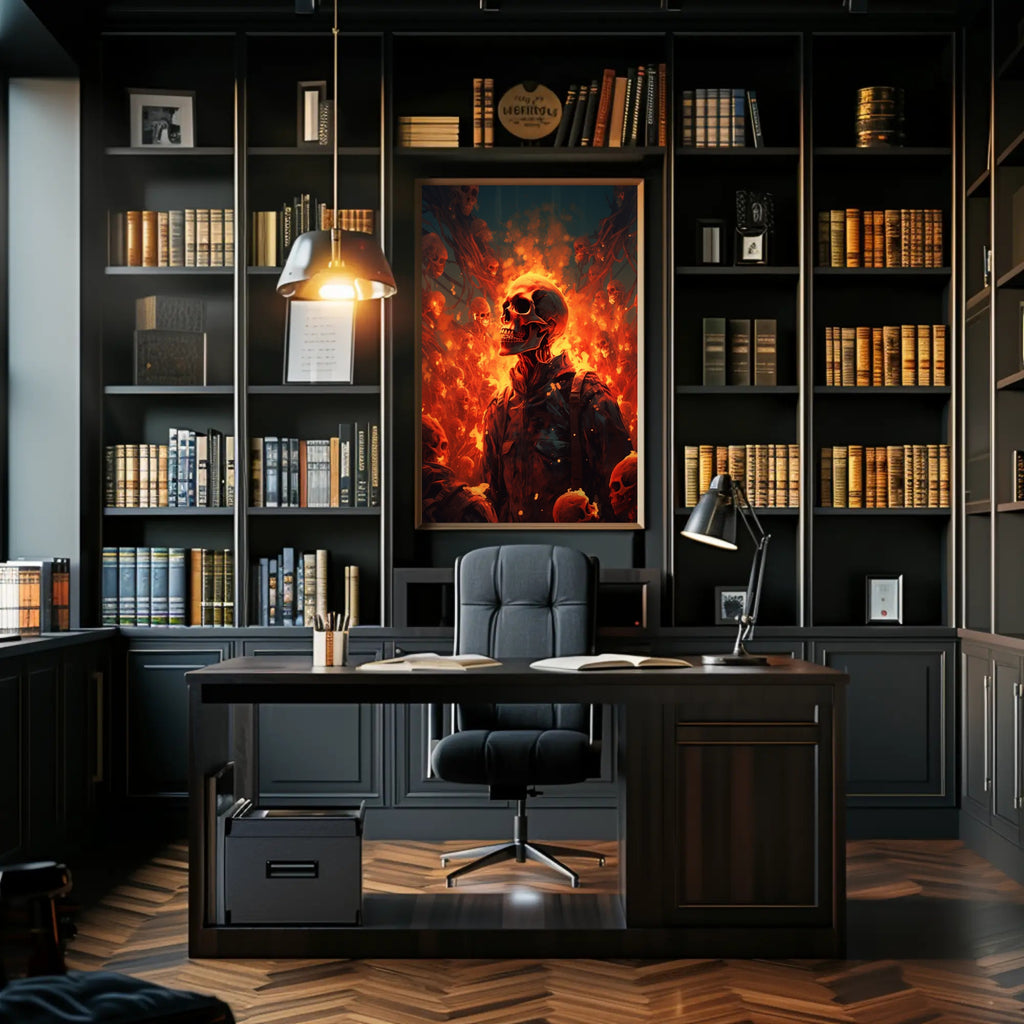 In summary, the Inferno Of Skulls Poster is not just a piece of wall art; it's a statement of style and personality. Don't miss the chance to elevate your decor—order yours today and let the allure of this artwork ignite your space!