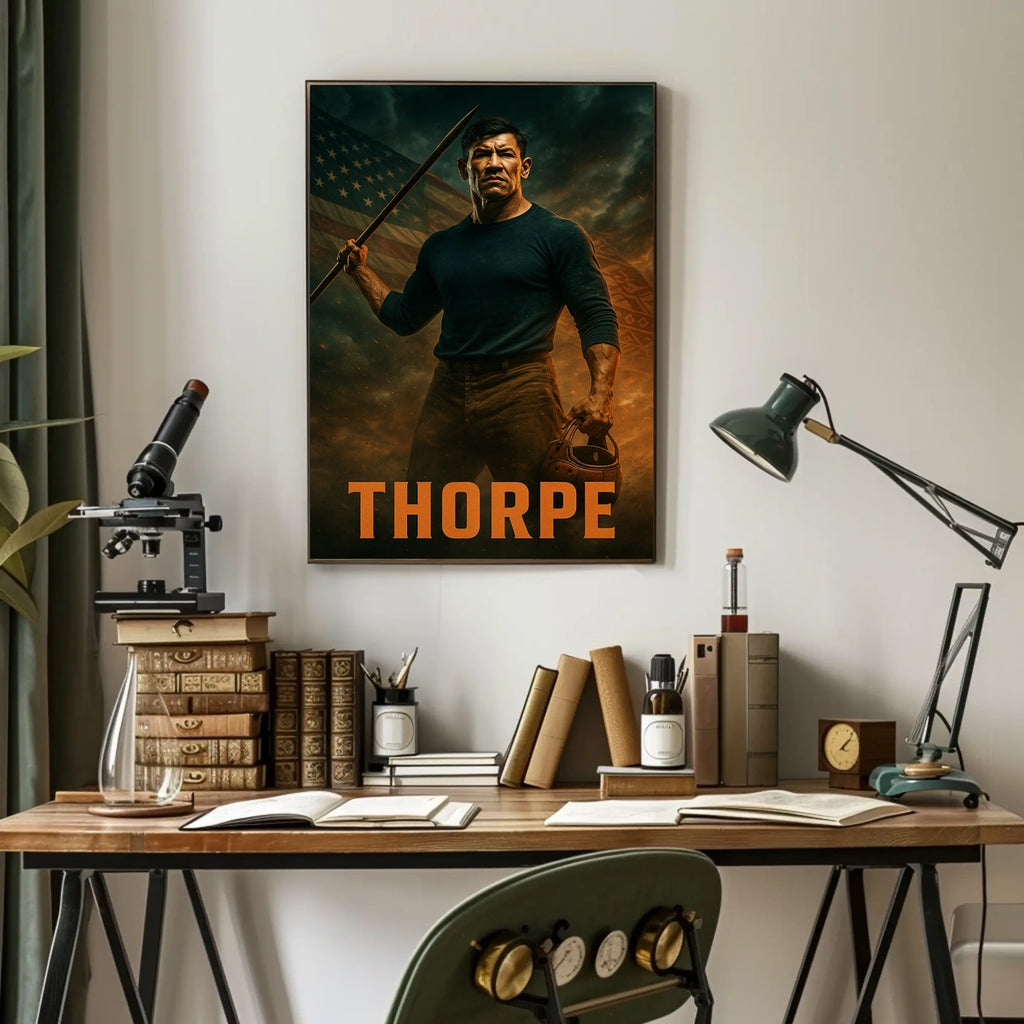 Immerse yourself in determination with this Inspiring Athlete Resilience Poster. This bold artwork pairs a poised athlete with a spear and a vintage helmet against a striking American flag backdrop, capturing courage, discipline, and the relentless pursuit of excellence. Perfect for gyms, home offices, or study spaces, this piece of motivational wall decor fuels focus and motivation day after day.
