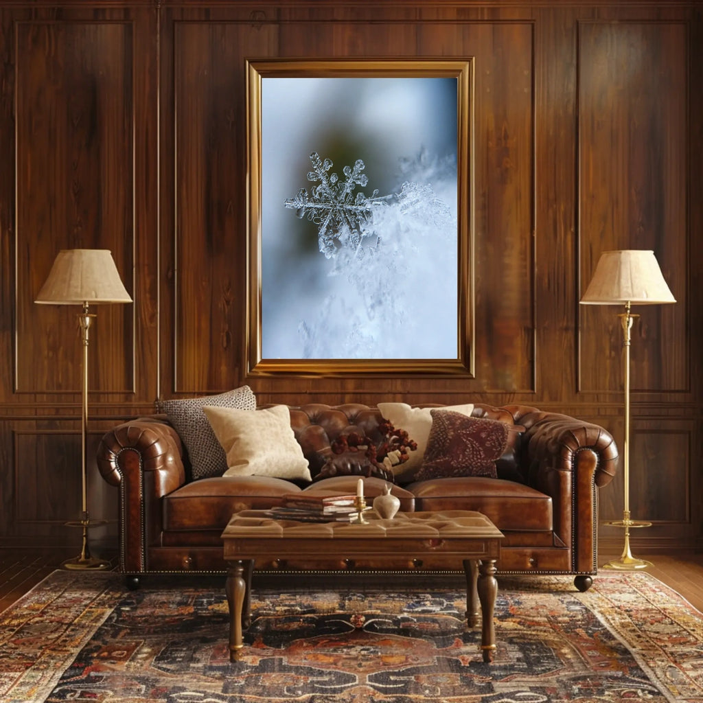 Bring the Intricate Snowflake Winter Scene Photorealistic Artistic Poster into your space today and let your walls tell a powerful story of winter, light, and natural artistry.
