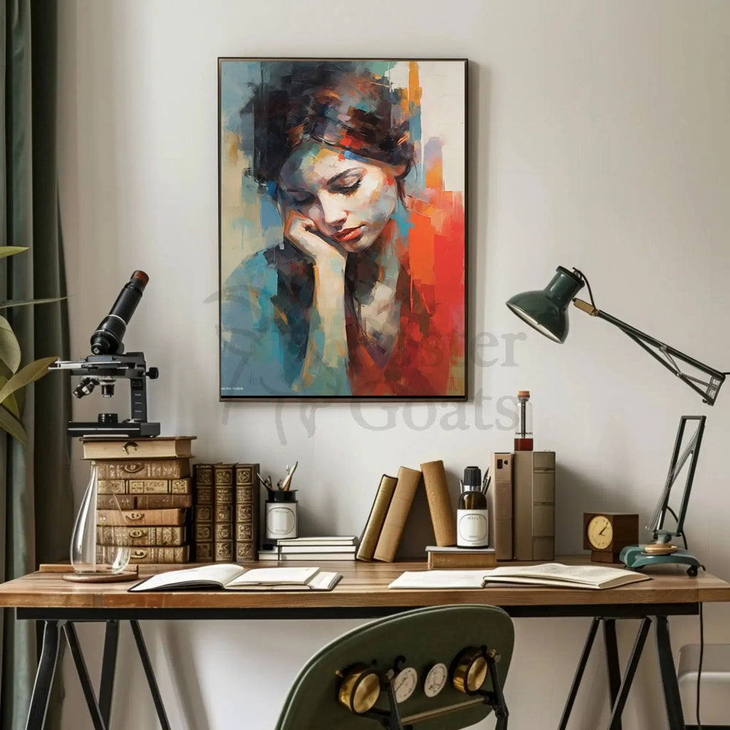 Introspective Beauty: Impressionistic Artistic Poster from PosterGoat brings a gallery-quality focal point to your home with expressive brushstrokes, layered texture, and a rich, vibrant palette that invites quiet reflection.