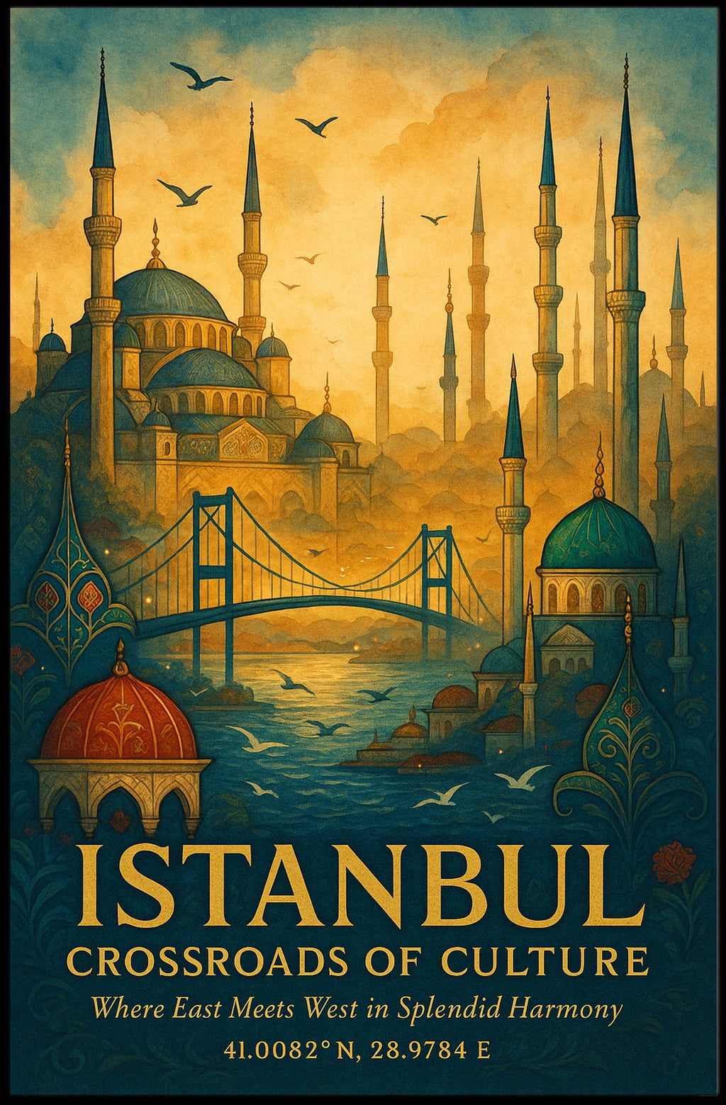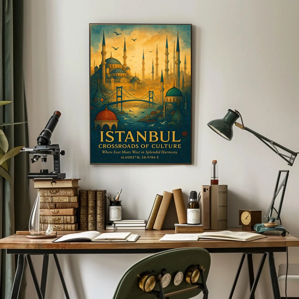 Immerse your space in the crossroads of culture with the Istanbul Crossroads of Culture Poster. This art print captures the city’s vibrant energy and dreamlike scenery, appealing to decor lovers and wanderers alike. Add a touch of world travel to any room with a design that tells a story.