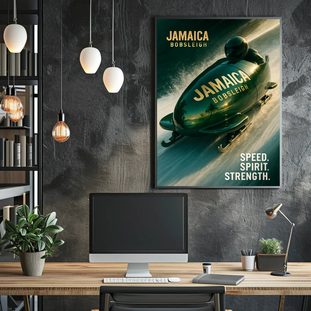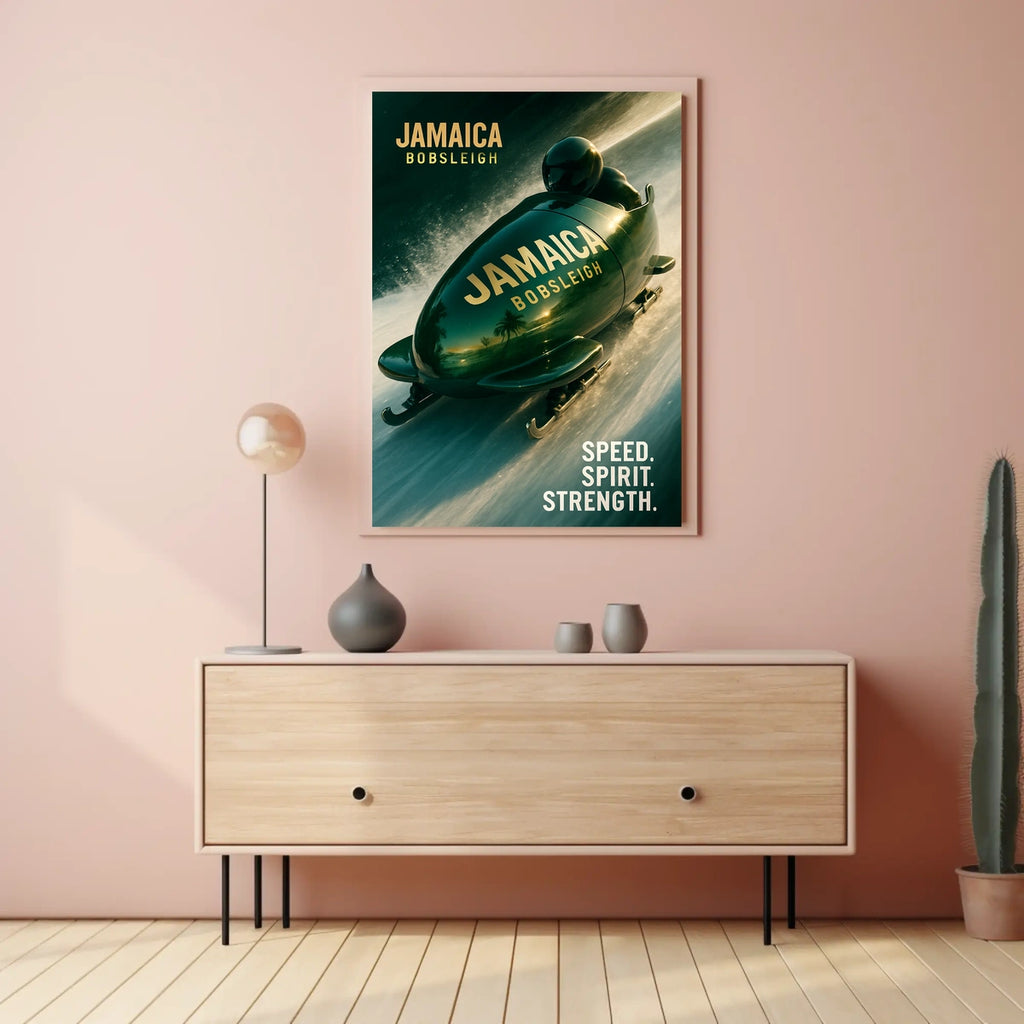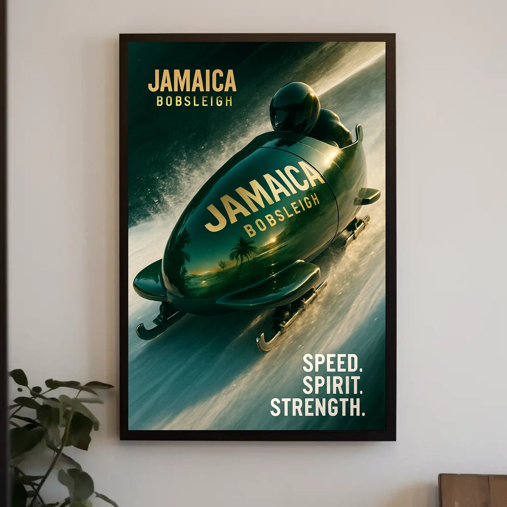 Bring this Jamaica Bobsleigh poster into your space and let it spark curiosity, conversation, and inspiration every day. Add to cart now to elevate your wall art with a touch of travel-ready energy.