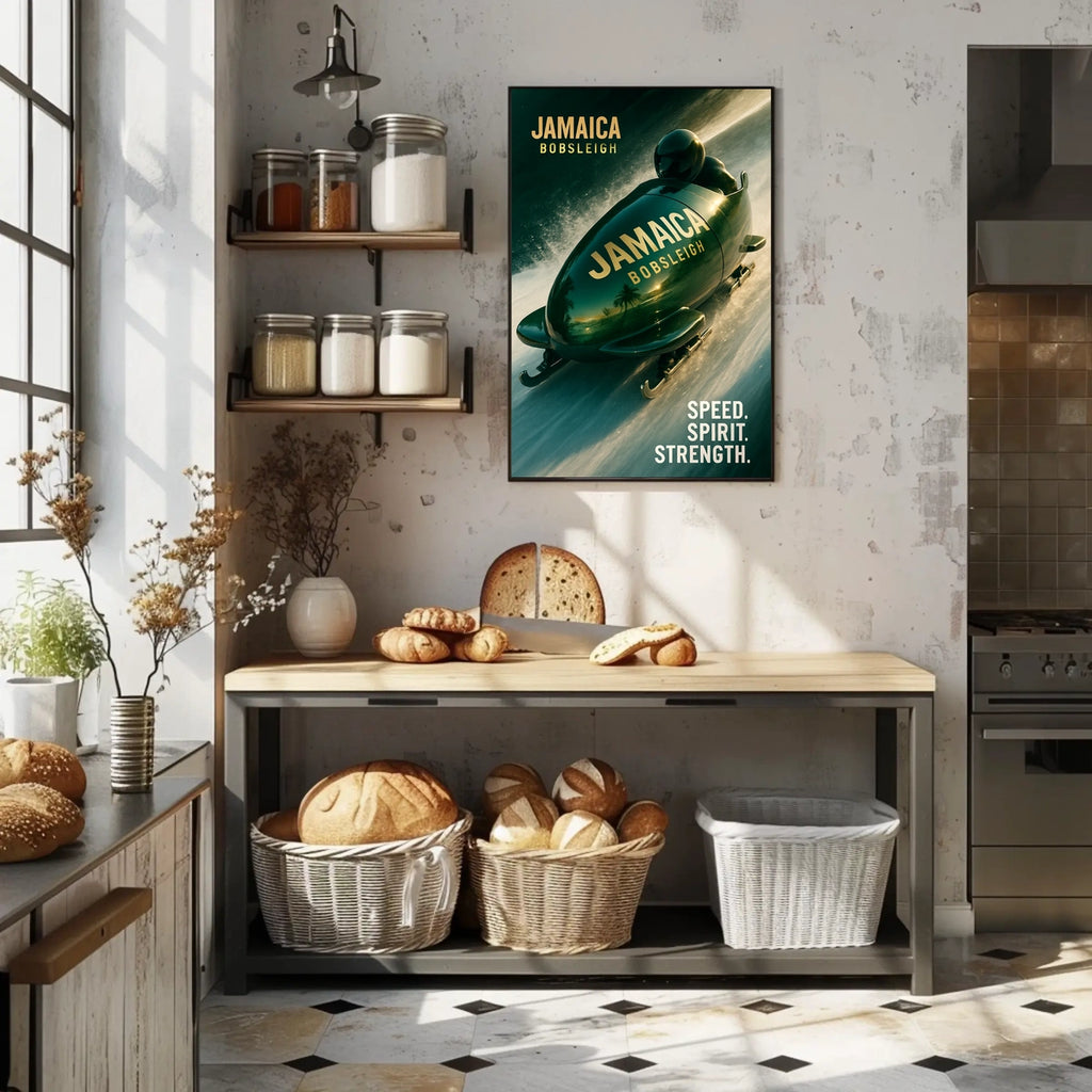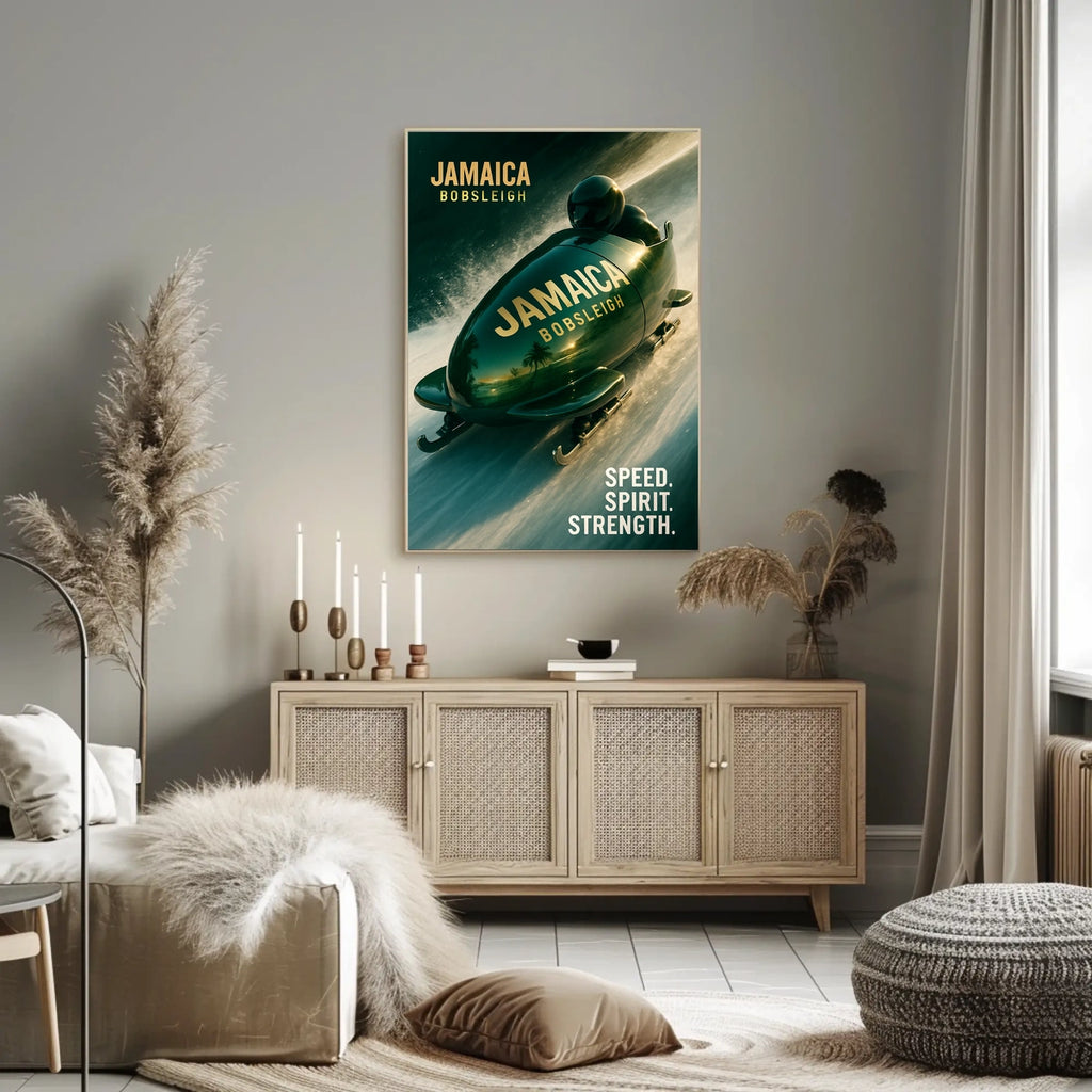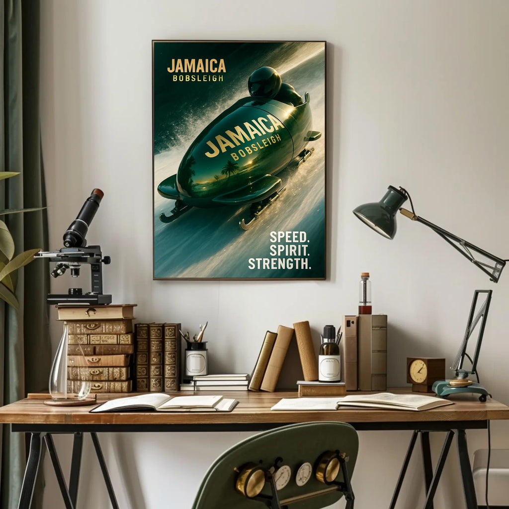 Bring this Jamaica Bobsleigh poster into your space and let it spark curiosity, conversation, and inspiration every day. Add to cart now to elevate your wall art with a touch of travel-ready energy.