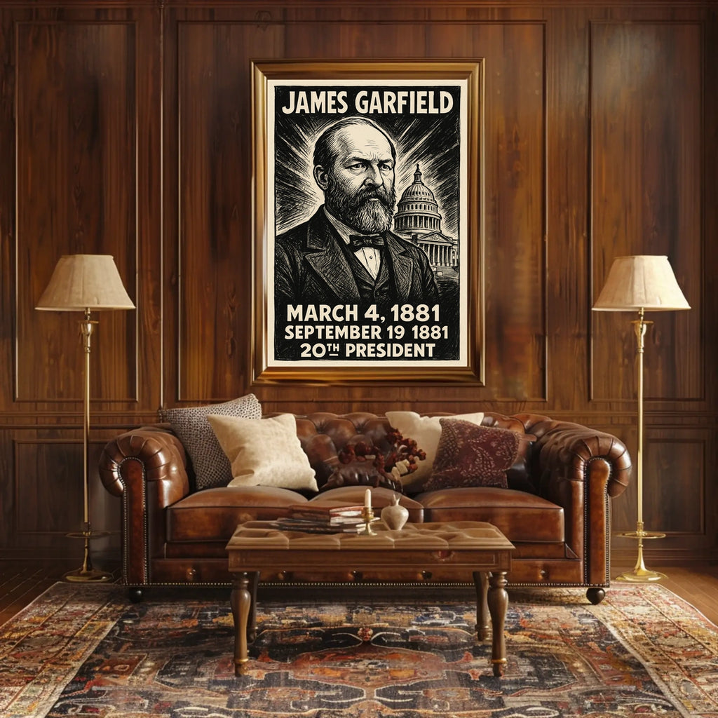 Transform your space with a captivating James A. Garfield black-and-white comic sketch poster. Ideal for history enthusiasts and patriotic interiors, this vintage-style wall art celebrates the 20th president with a bold, illustrated flair.