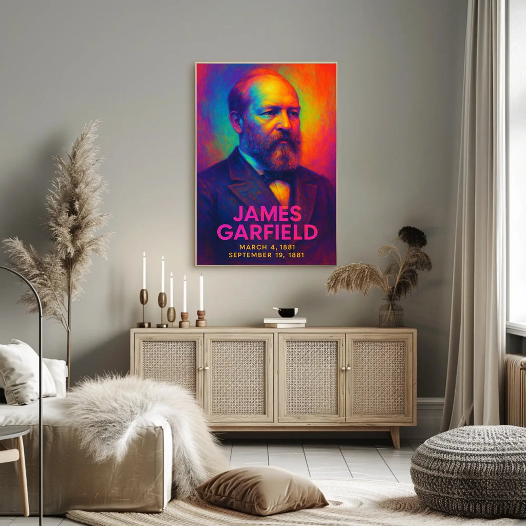 James A. Garfield 20th President of the United States Neon Gradient Overlay Poster
