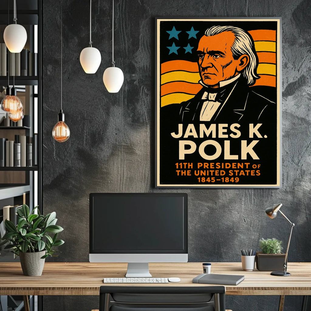 - Printed with precision and made to inspire, this artwork is more than decoration—it’s a conversation piece that connects history, culture, and style. Bring James K. Polk 11th President Poster into your home, classroom, or office today and let your walls tell a powerful story.