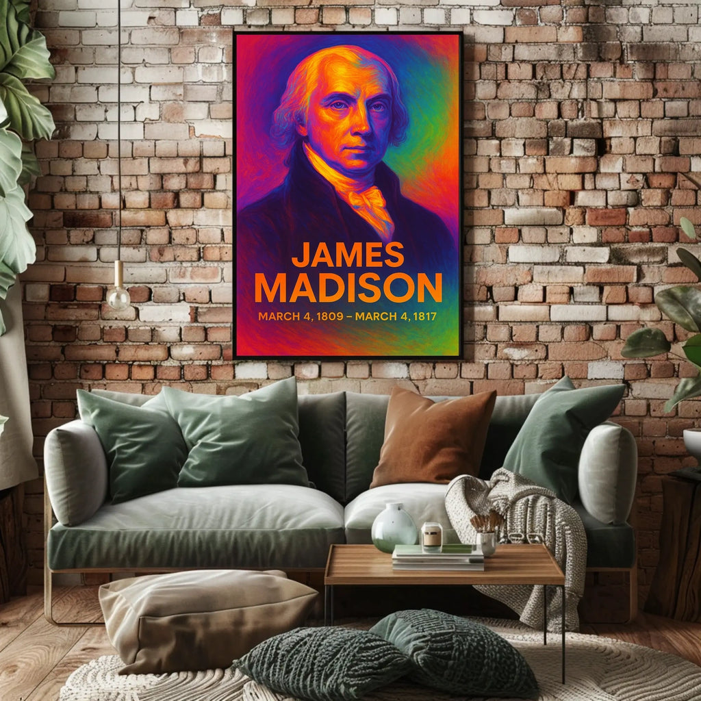 James Madison 4th President of the United States Neon Gradient Overlay Poster