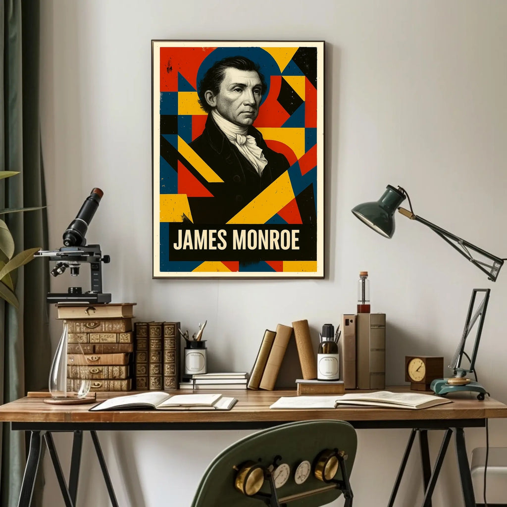 James Monroe, the 5th President of the United States, is featured in an abstract pop poster.