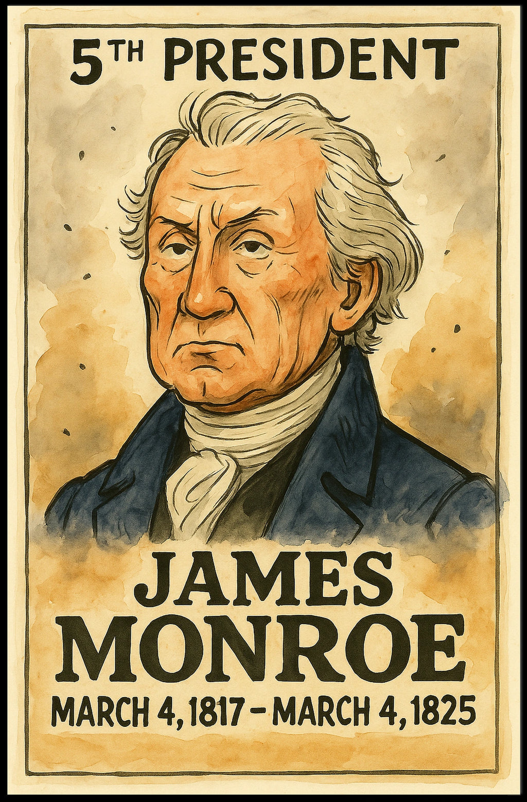 Printed with precision and made to inspire, this artwork is more than decoration—it’s a conversation piece that connects history, culture, and style. Bring James Monroe, the 5th President of the United States, into your home, classroom, or office today and let your walls tell a powerful story.