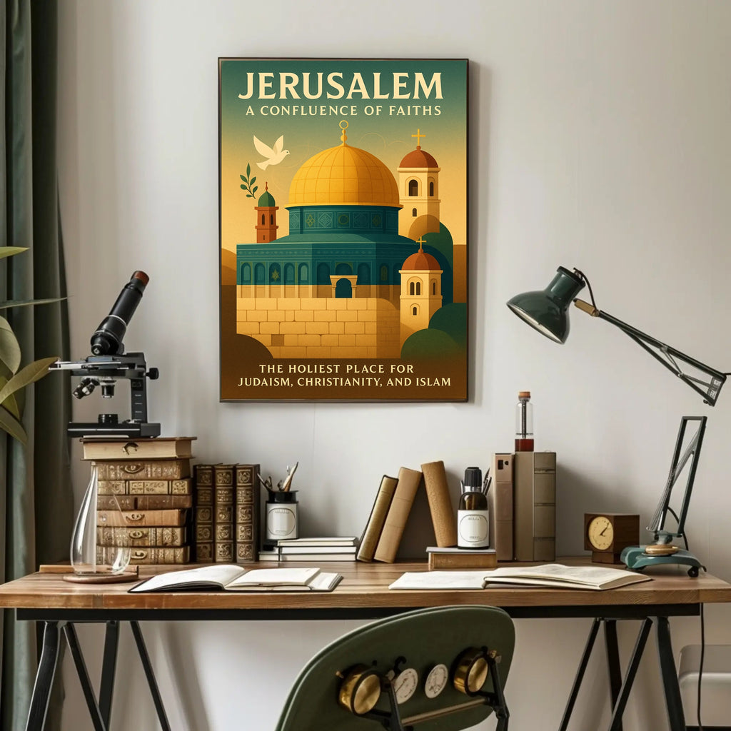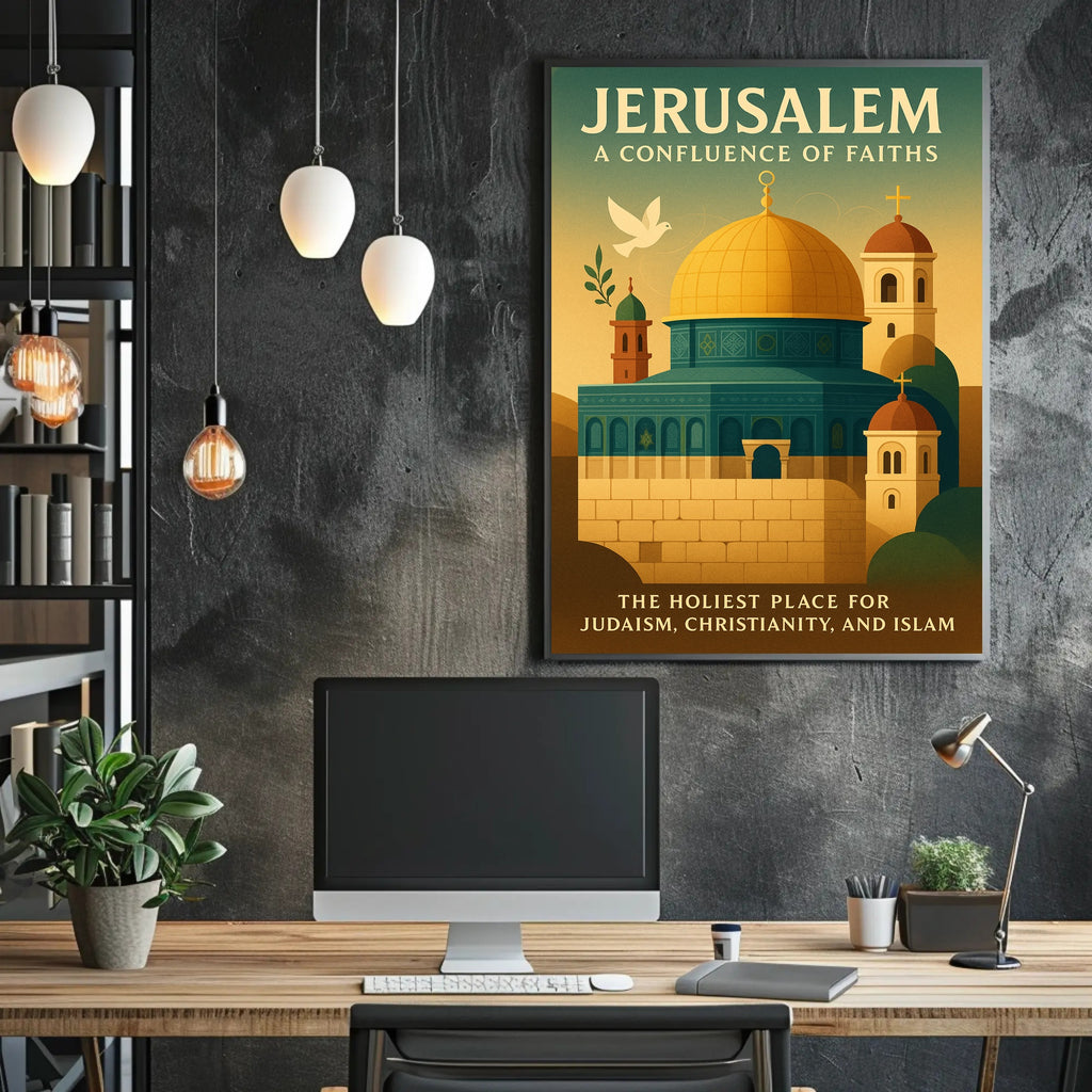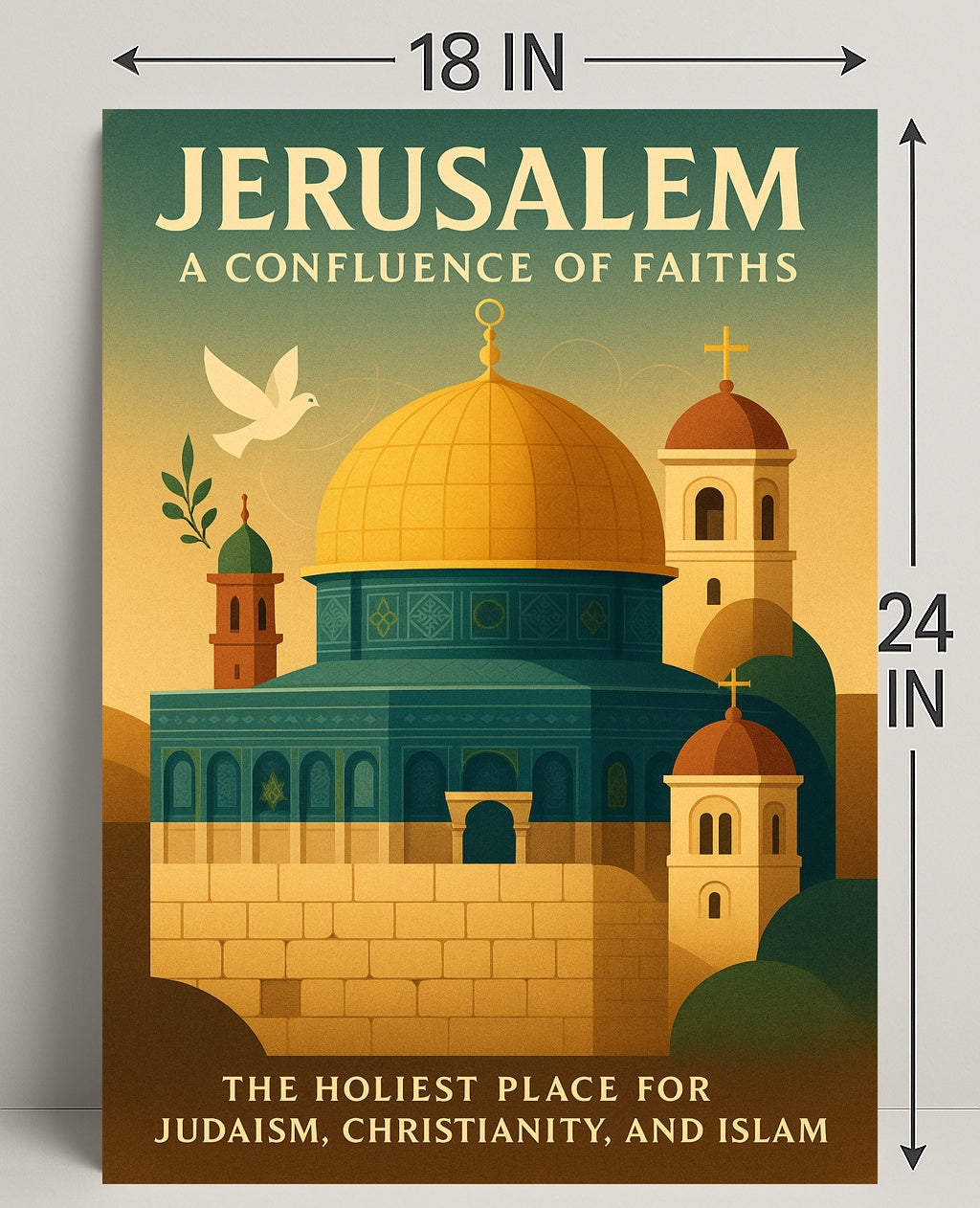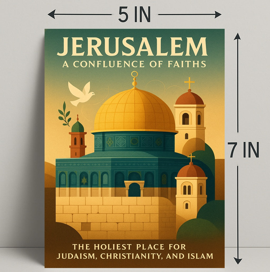 Add a piece of history to your walls today — order the Jerusalem Confluence of Faiths poster and bring harmony and heritage into your home.