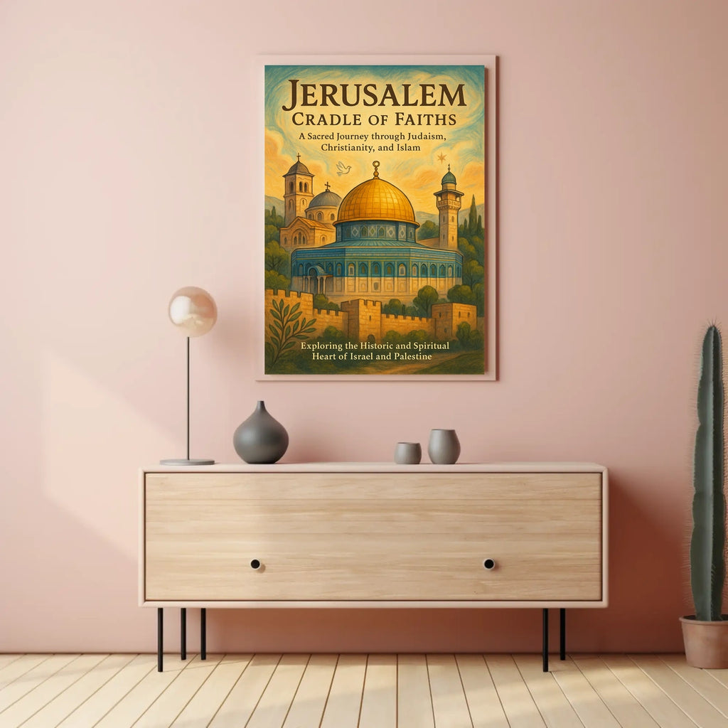 Bring a touch of Jerusalem into your home with the Jerusalem Cradle of Faiths poster. It's a perfect piece of wall art for home decor. It blends real-world scenery with artful warmth, so you get a calm, inviting look that fits bedroom, living room, or hallway walls. The design nods to travel and heritage without shouting, making it easy to mix and match with your existing decor. It's a simple, everyday way to satisfy wanderlust and love of art in one piece.