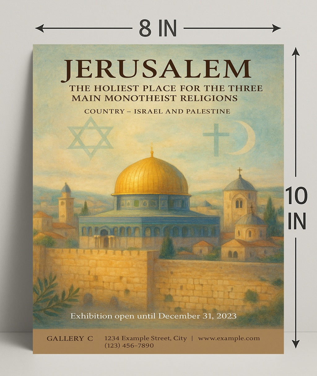 Printed with archival-quality inks and designed to showcase fine detail and soft color transitions, this Jerusalem poster is ideal for framing or mounting as-is. Whether you’re decorating a living space, creating a travel-inspired gallery wall, or searching for a meaningful gift, this print adds history, warmth, and serenity to any environment.