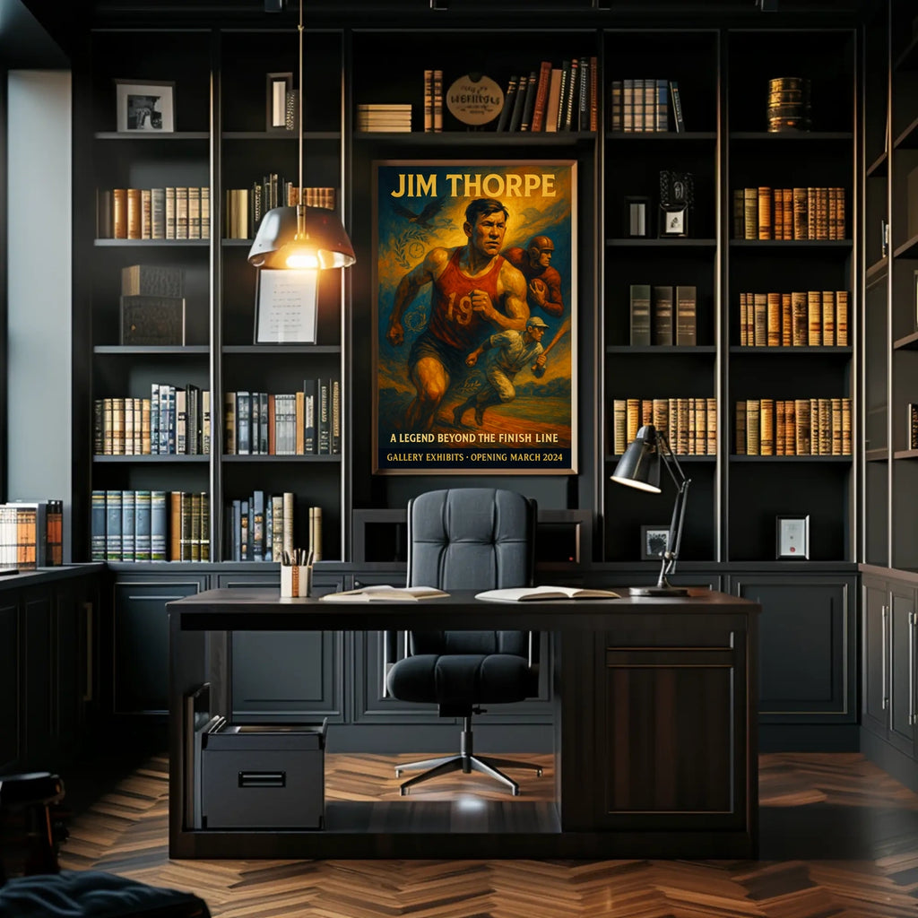 Conversation piece that connects history, culture, and style. Bring Jim Thorpe A Legend Beyond the Finish Line into your home, classroom, or office today and let your walls tell a powerful story.