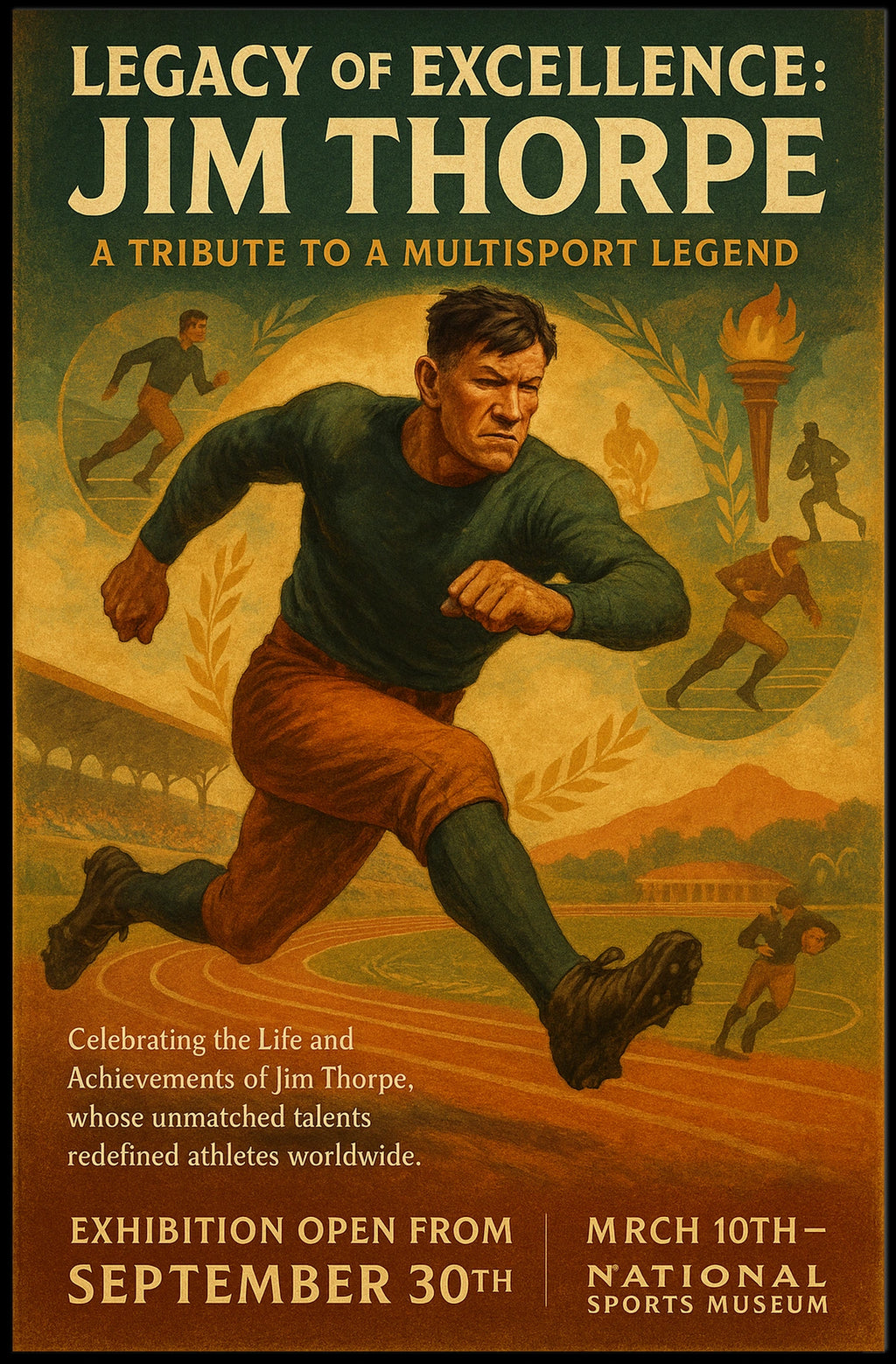 - Detailed design highlighting the multisport legacy of Jim Thorpe and iconic scenes