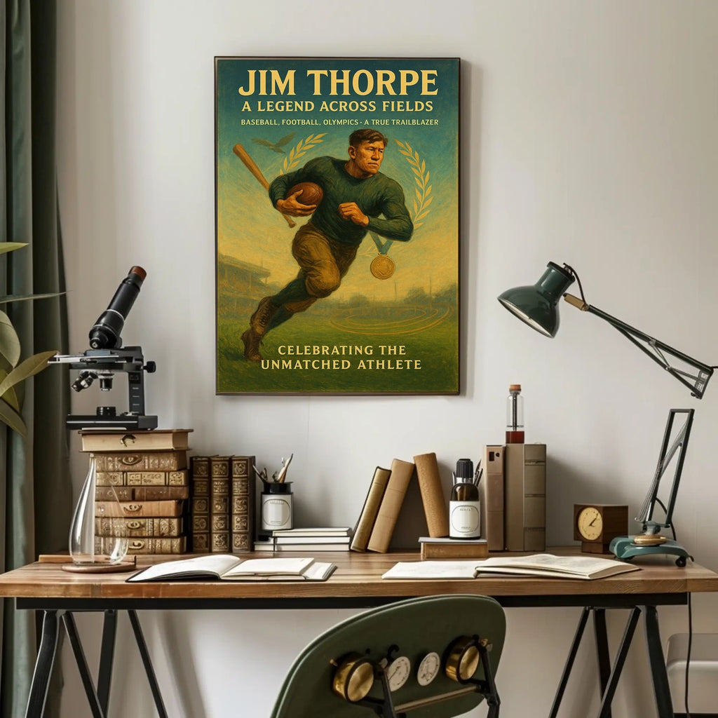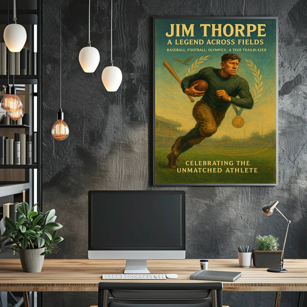 Intro: Celebrate the enduring legacy of Jim Thorpe with this striking poster. Rich in vintage athletic energy, it blends historical significance with bold, contemporary design—an ideal centerpiece for bedrooms, offices, or study spaces. Whether you’re a sports fan, a history buff, or someone who champions determination, this poster serves as a daily reminder to push beyond limits.