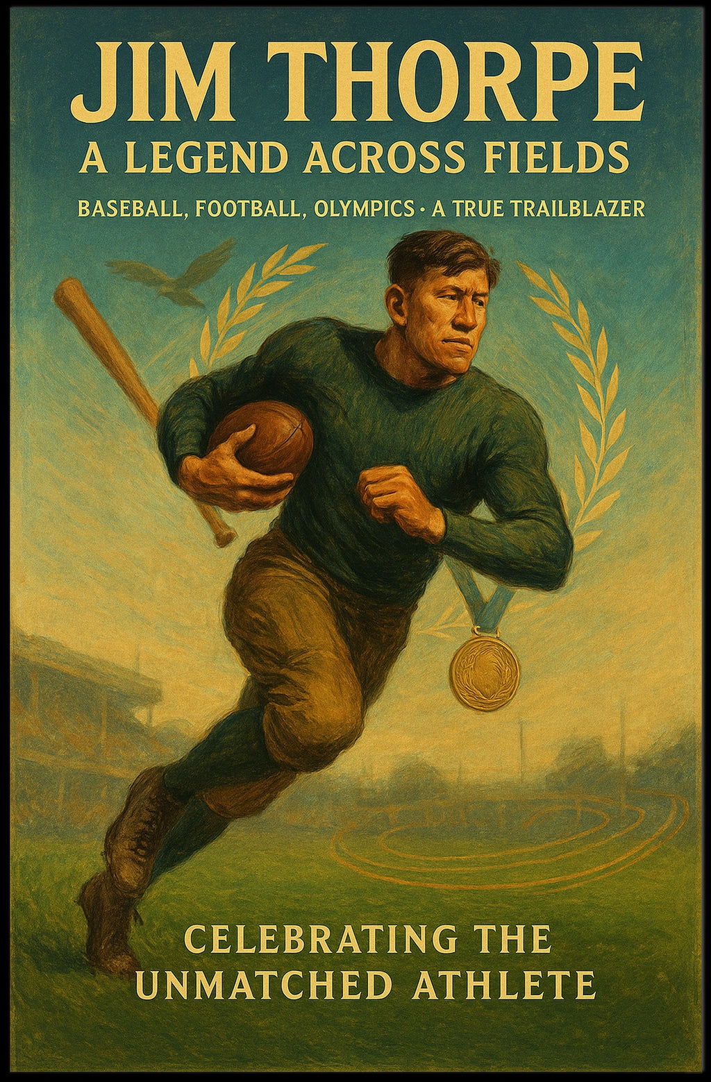 Iconic tribute to a multi-sport legend: Celebrates Thorpe’s versatility across track, football, and baseball, proving that cross-discipline excellence can redefine what an athlete can achieve.