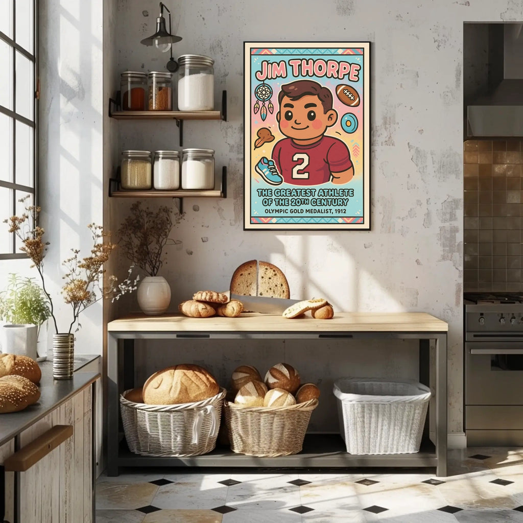 Immerse yourself in the legacy of Jim Thorpe with this vibrant poster that captures the World's Greatest Athlete. Rich imagery highlights his Olympic victories and undeniable athletic prowess, making it a must-have for sports lovers and history buffs alike.