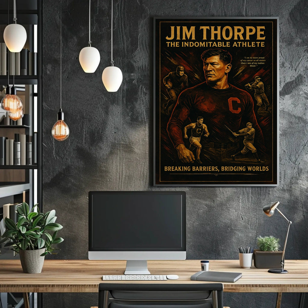 Celebrate the legend of Jim Thorpe with this stunning poster that captures his unmatched versatility and strength. Designed for sports enthusiasts and history buffs, it honors Thorpe’s athletic achievements across multiple disciplines and cements him as a cultural icon whose legacy transcends sport, inspiring viewers to break barriers and bridge worlds.
