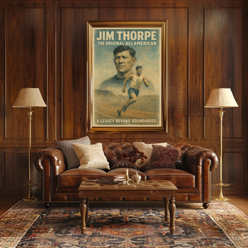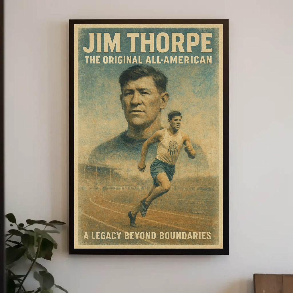 Celebrate a trailblazer of athletics with this Jim Thorpe Legendary Athlete Poster. Rich in history and style, it captures Thorpe's groundbreaking achievements and enduring spirit, making it a standout centerpiece for any sports nook.