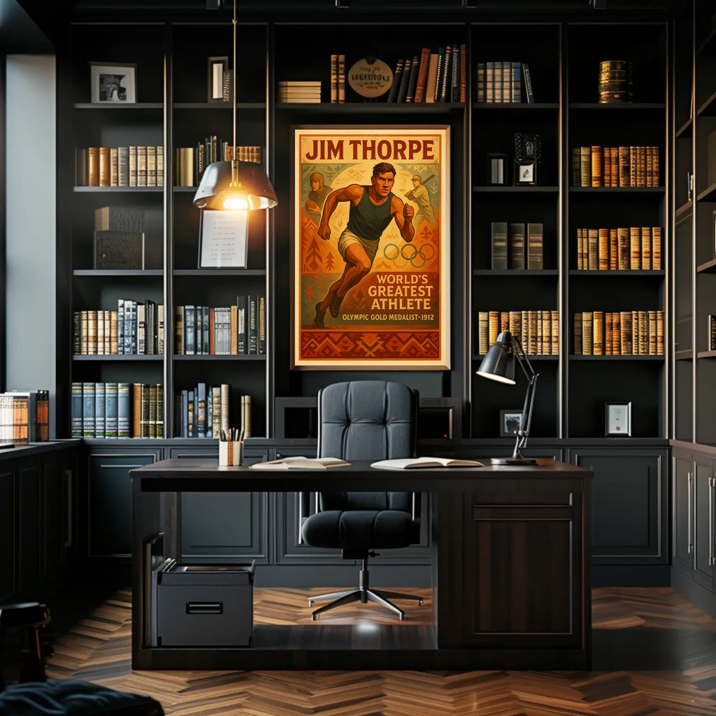 Celebrate the enduring legacy of Jim Thorpe with this Legendary Athlete Poster. This vintage-inspired print captures his multi-sport mastery and Olympic triumph, turning historic achievement into wall-ready art. Perfect for classrooms, gyms, offices, living spaces, or personal studios, it motivates greatness every day.