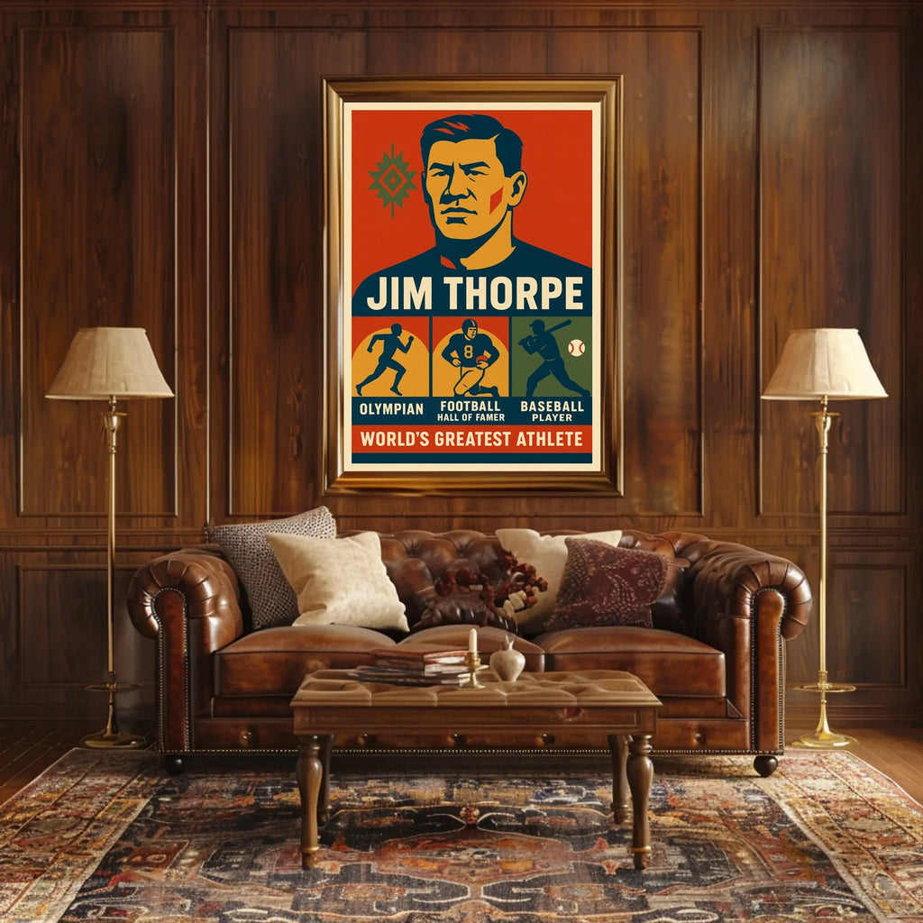 Intro: Honor the legendary Jim Thorpe with this vibrant poster, celebrating his legacy as the Worlds Greatest Athlete. This dynamic print honors his remarkable achievements across athletics, baseball, and football, making it a bold centerpiece for fans, classrooms, and living spaces alike.