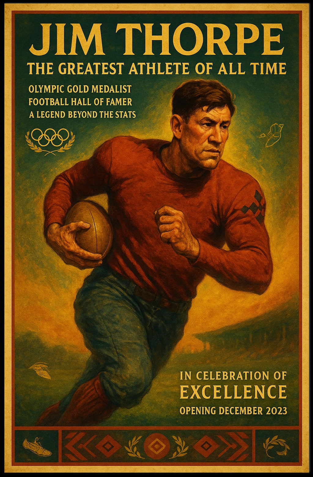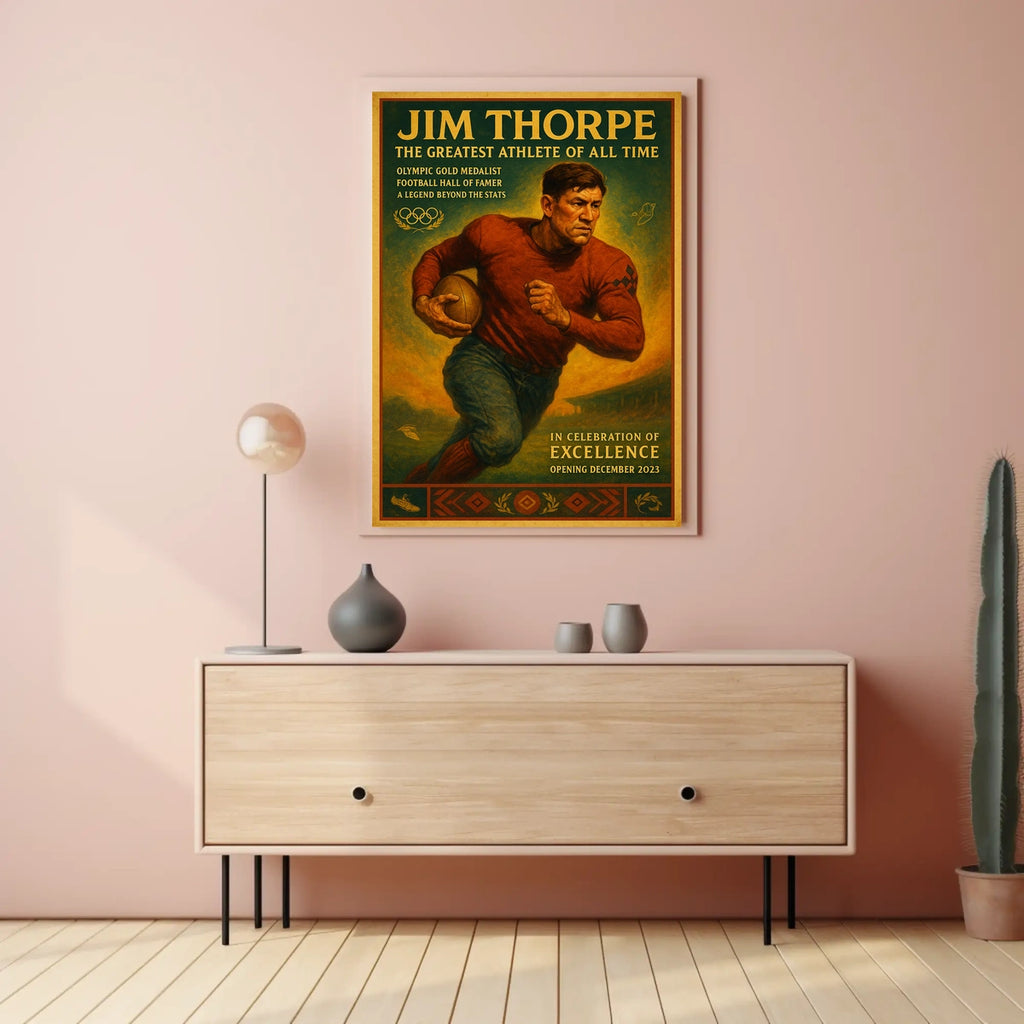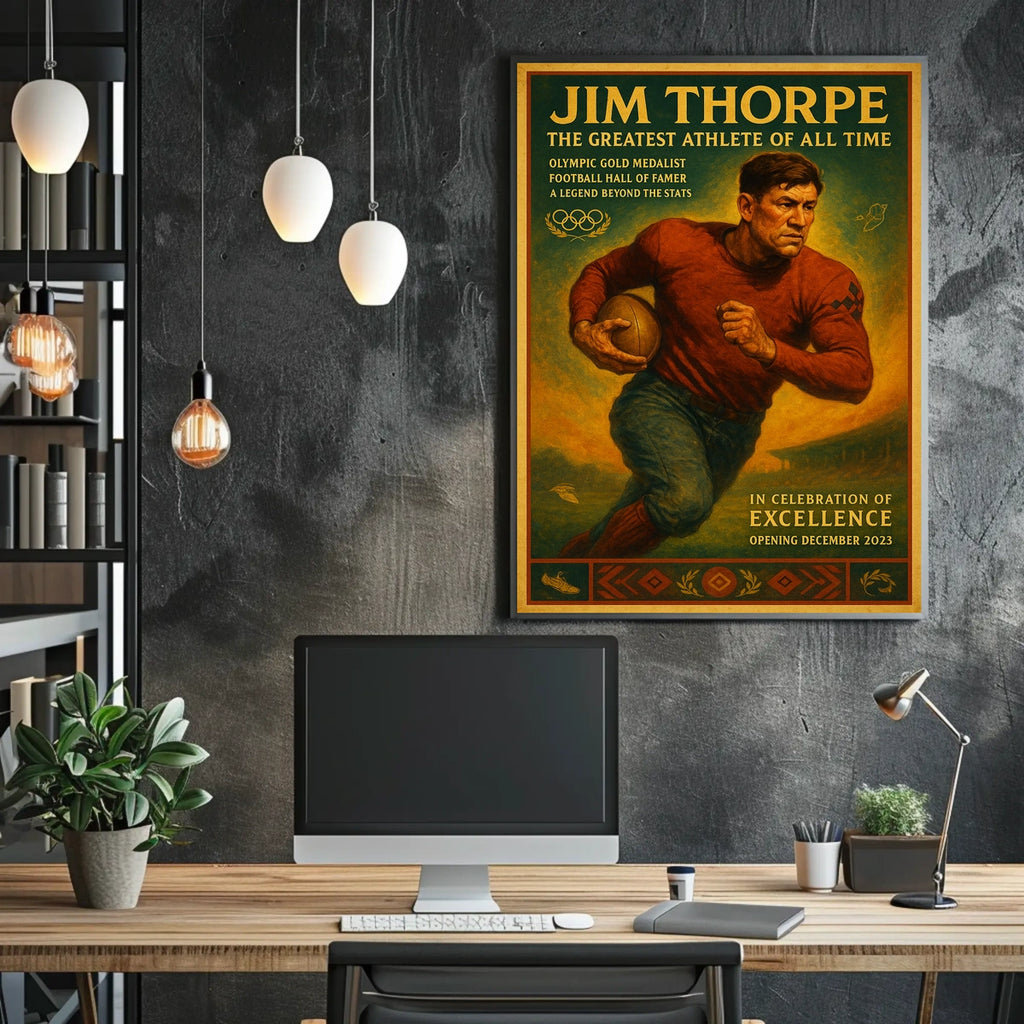 Celebrate the unparalleled legacy of Jim Thorpe with this stunning poster tribute. Designed for sports fans and history lovers, it captures the essence of a true icon whose determination reshaped athletic greatness.