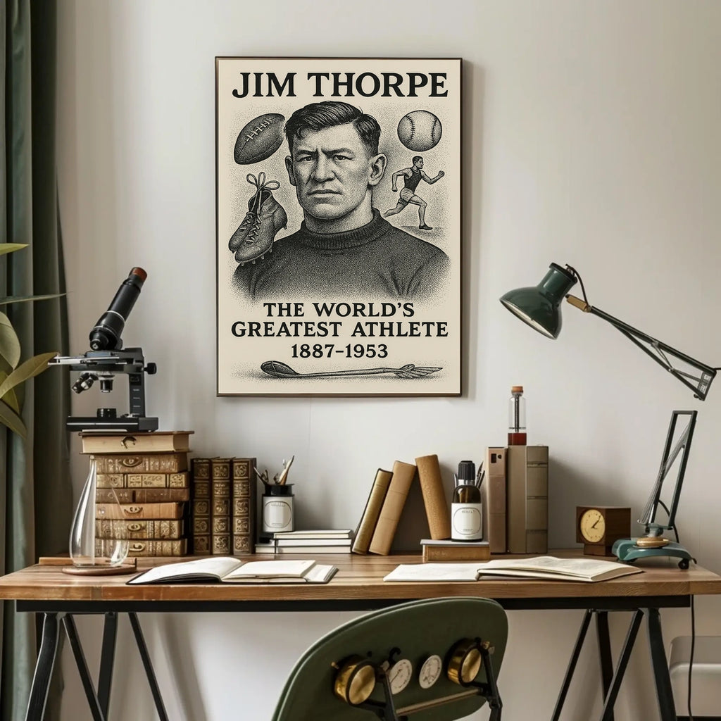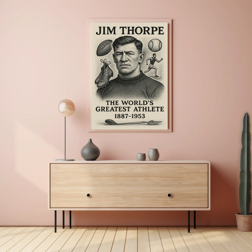 This poster is more than art—it’s motivation and a quick lesson in perseverance. Bring Thorpe’s legendary legacy into your space and order today to inspire daily greatness. Shop now to claim this inspiring tribute.