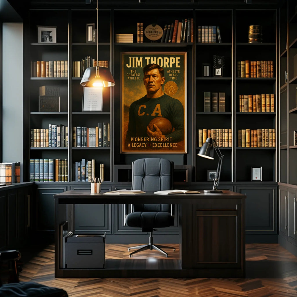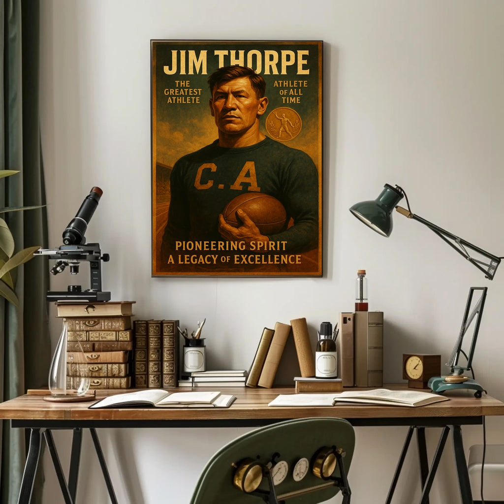 Own a piece of athletic history with this Jim Thorpe poster and let his legendary drive fuel your space. Perfect for offices, study areas, or classrooms—add to cart today and celebrate a true sports icon.