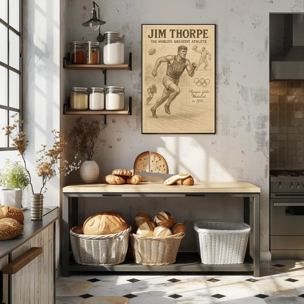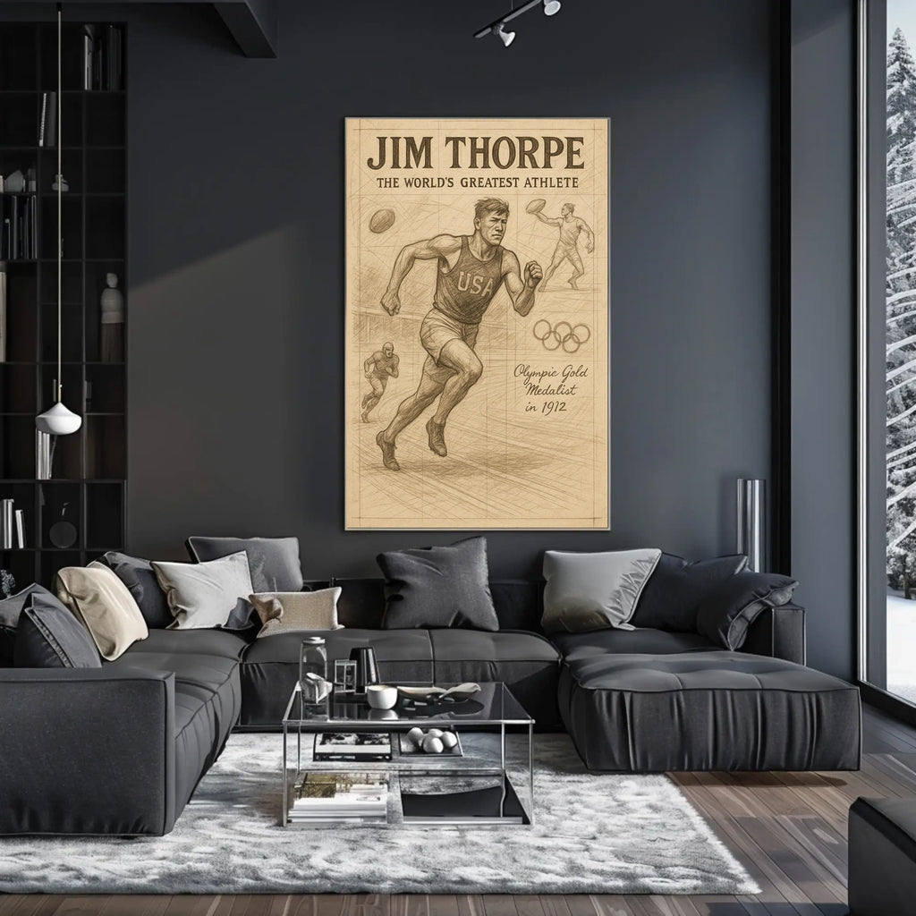 Intro: Celebrate the legacy of Jim Thorpe with a striking poster that captures the essence of a true sports legend. This artwork honors Thorpe’s Olympic achievements and unparalleled athletic prowess, offering a compelling centerpiece for living rooms, offices, or study spaces that inspires greatness daily.