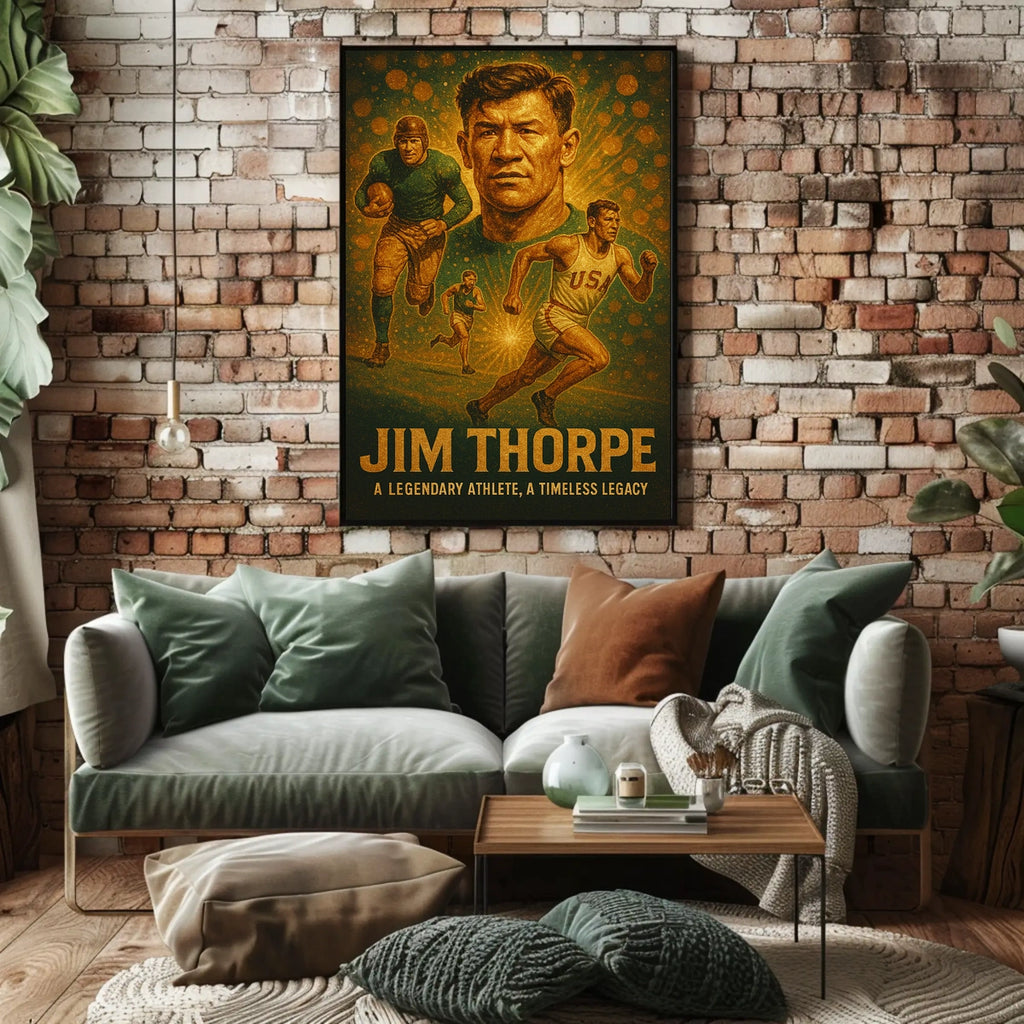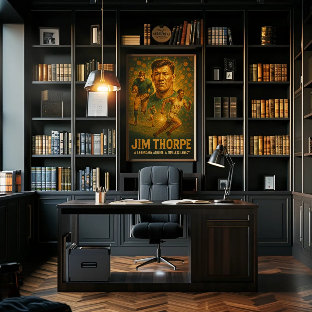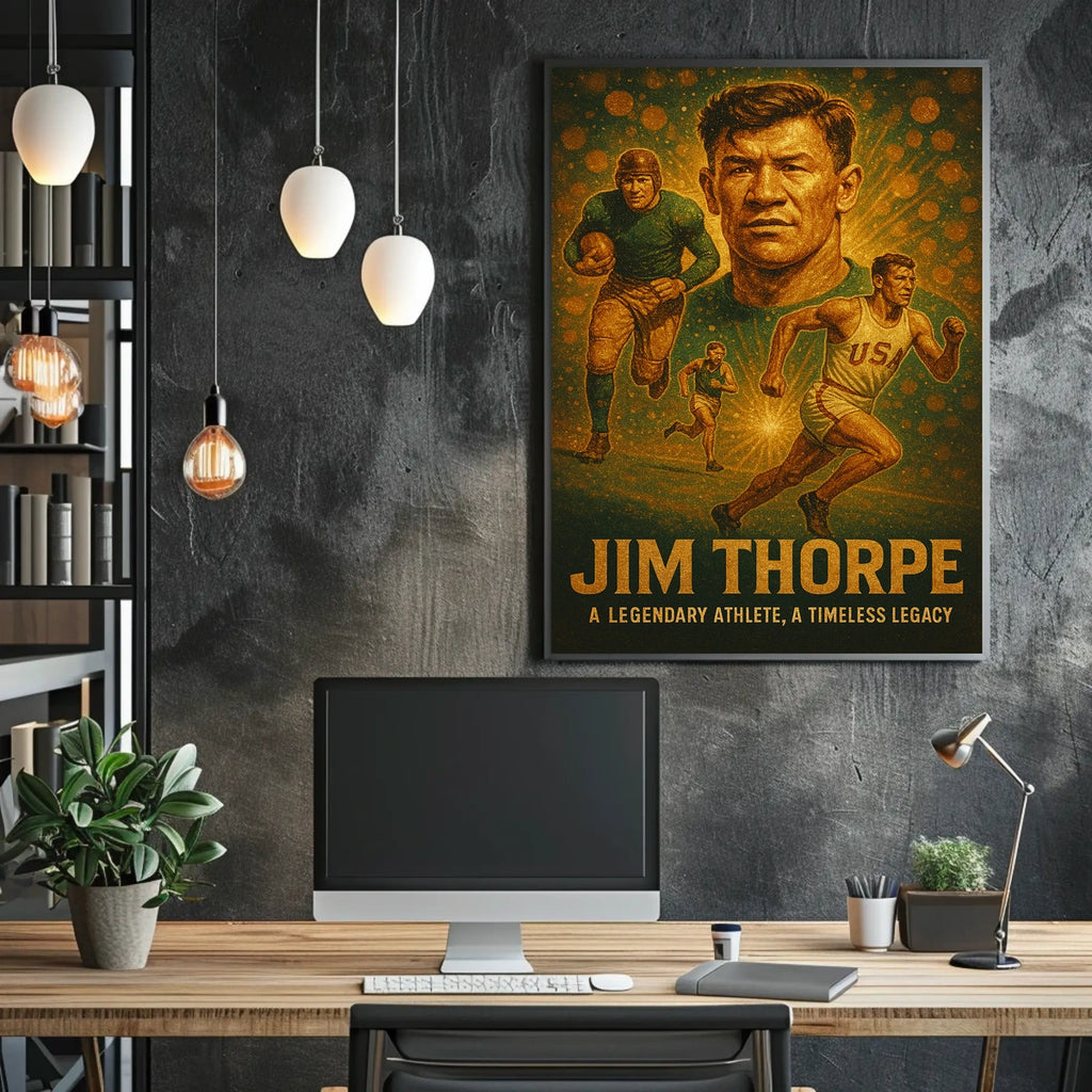 This poster is a lasting tribute to athletic excellence and iconic sports figures. It celebrates Jim Thorpe's enduring legacy and invites daily inspiration—from classrooms to living rooms. Add this artful tribute to your collection today—shop now and elevate your space with a true sports legend.