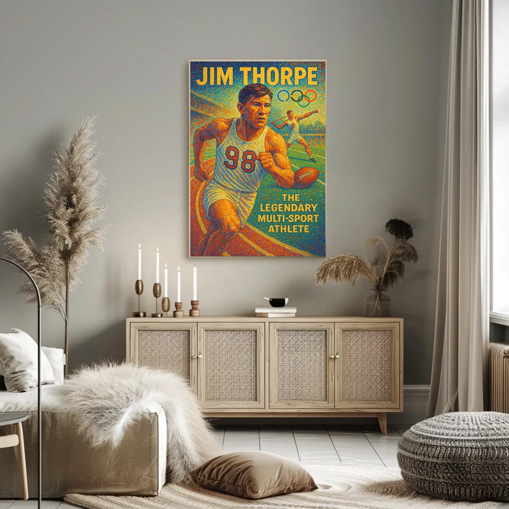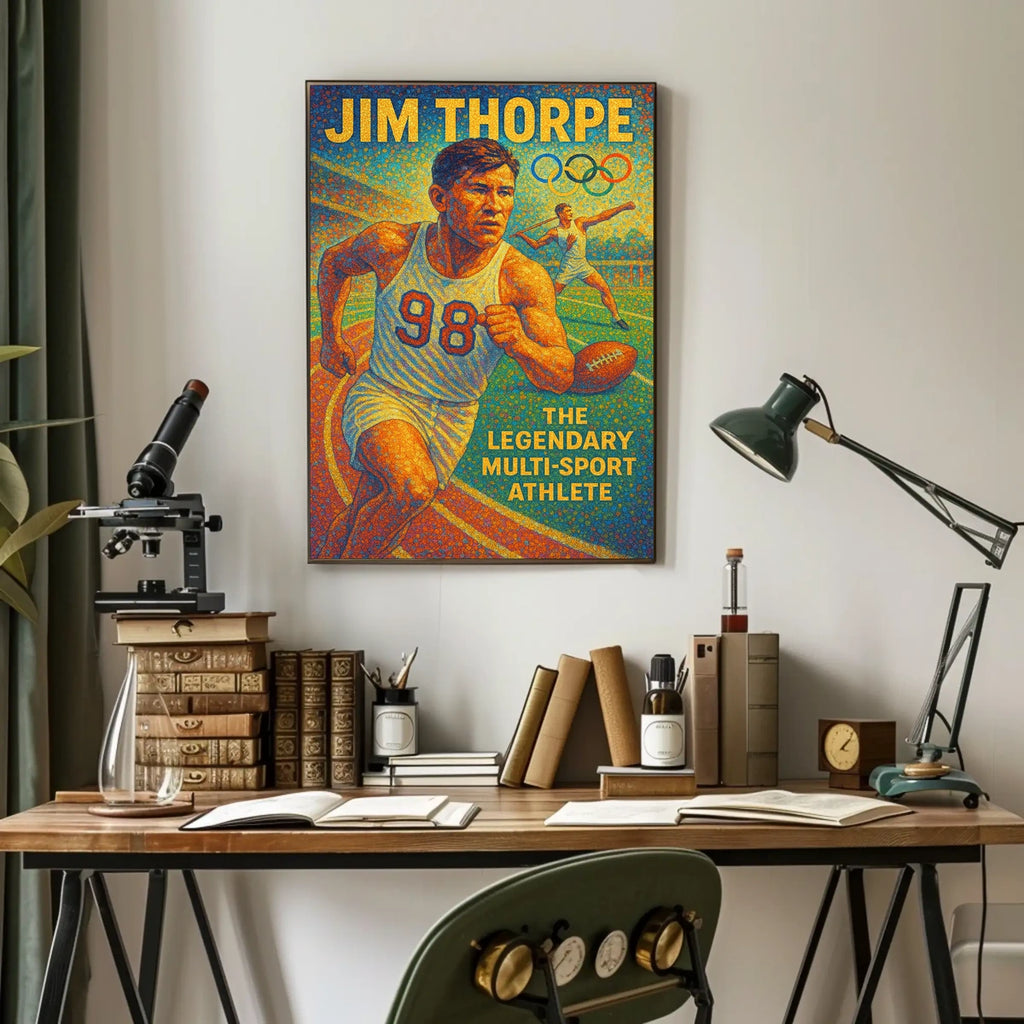 Celebrate the enduring legacy of one of sport's most versatile icons with this Jim Thorpe Iconic Multi-Sport Legend Poster. This striking wall art honors a pioneer who redefined athletics history, blending historic achievement with modern design to inspire greatness in any space.