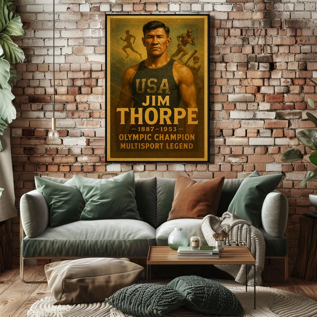 Intro: Celebrate the extraordinary breadth of Jim Thorpe with this striking poster that honors his Olympic triumphs and multisport brilliance. Designed for sports lovers and history buffs, it blends iconic imagery with a clean, motivational aesthetic that elevates any space and fuels ambition.